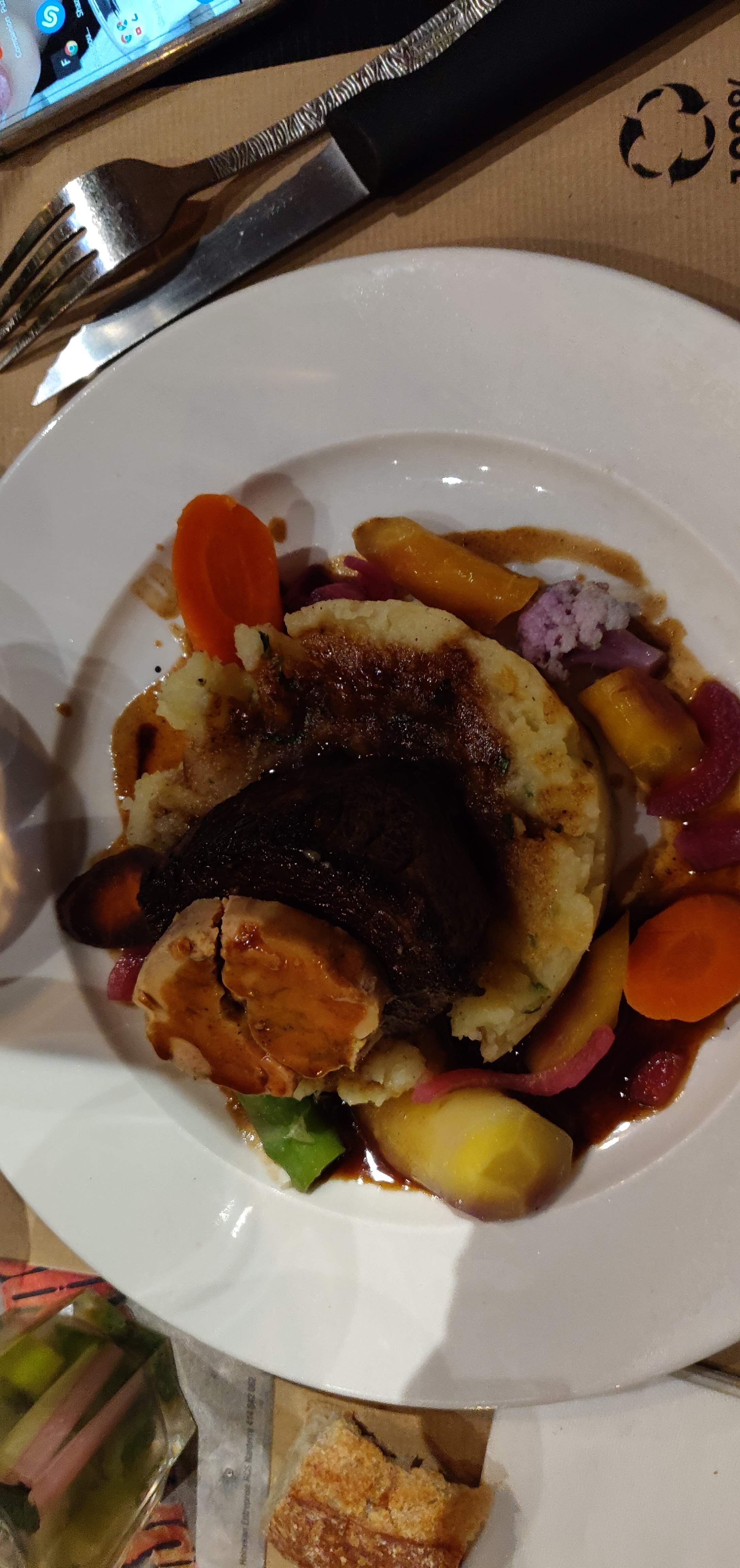 Posté le 01/01/2025 à 02:38"Super expérience, prix mini et plats maîtrisés. La joue de bœuf en sauce était un délice. Le patron au petit soin m'a fait un micro plat en plus pour me permettre de goûter celui d'un ami."