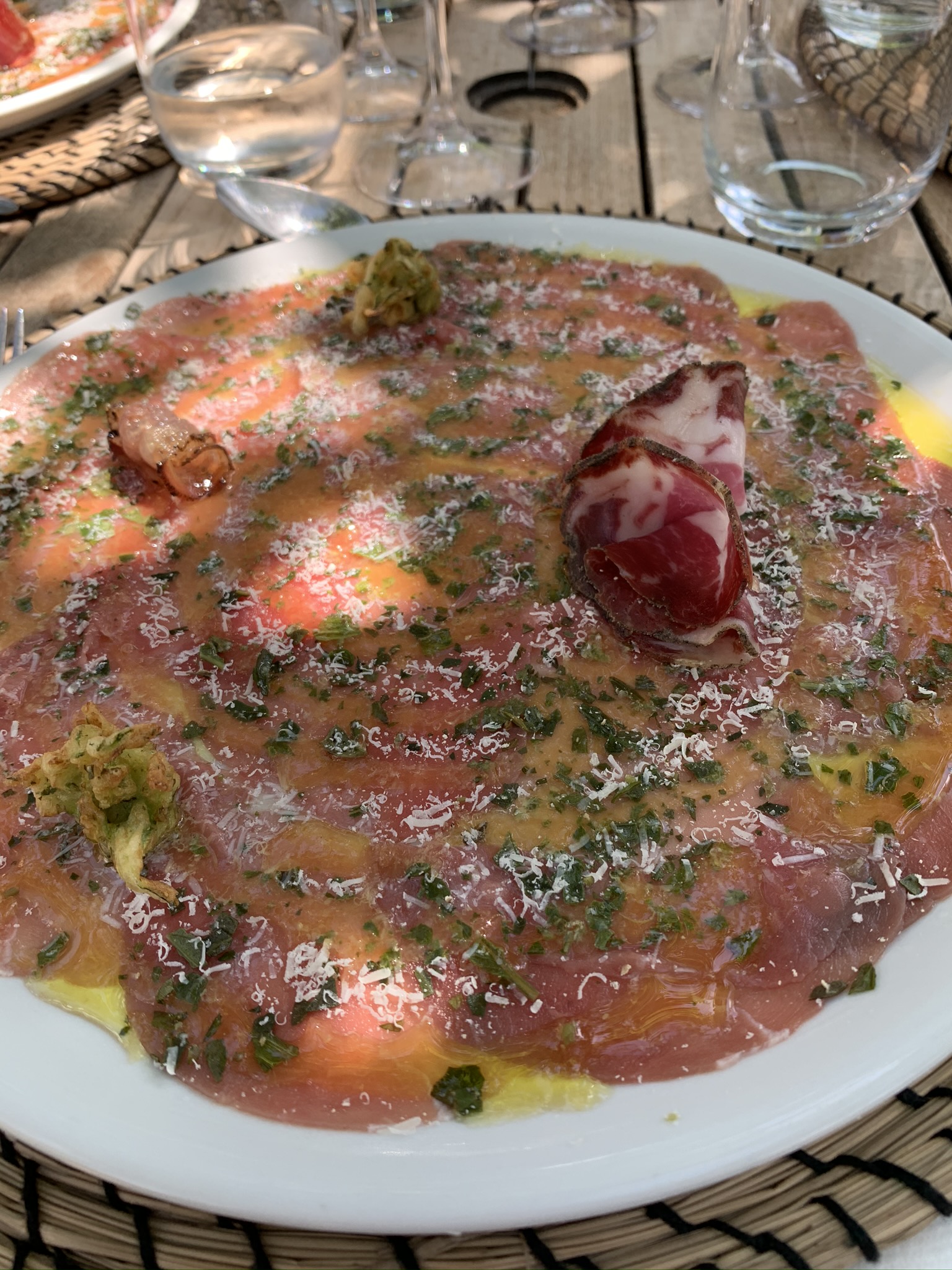 Posté le 14/08/2020 à 12:55"Après une courte randonnée (2h AR) au si romantique Lac de Creno, prière de se ressourcer au jardin A Merendella dans le joli village perché de Soccia. Accueil et service d’une extrême gentillesse, carte expliquée avec détails et passion. Plats savoureux cuisinés avec art à partir de produits locaux : carpaccio de veau (photo), quasi de veau corse aux agrumes (photo), moelleux à la châtaigne glace à la fleur d’immortelle...Un de ces moments magiques qu’on n’oublie pas quand tout autour de soi est juste...parfait."