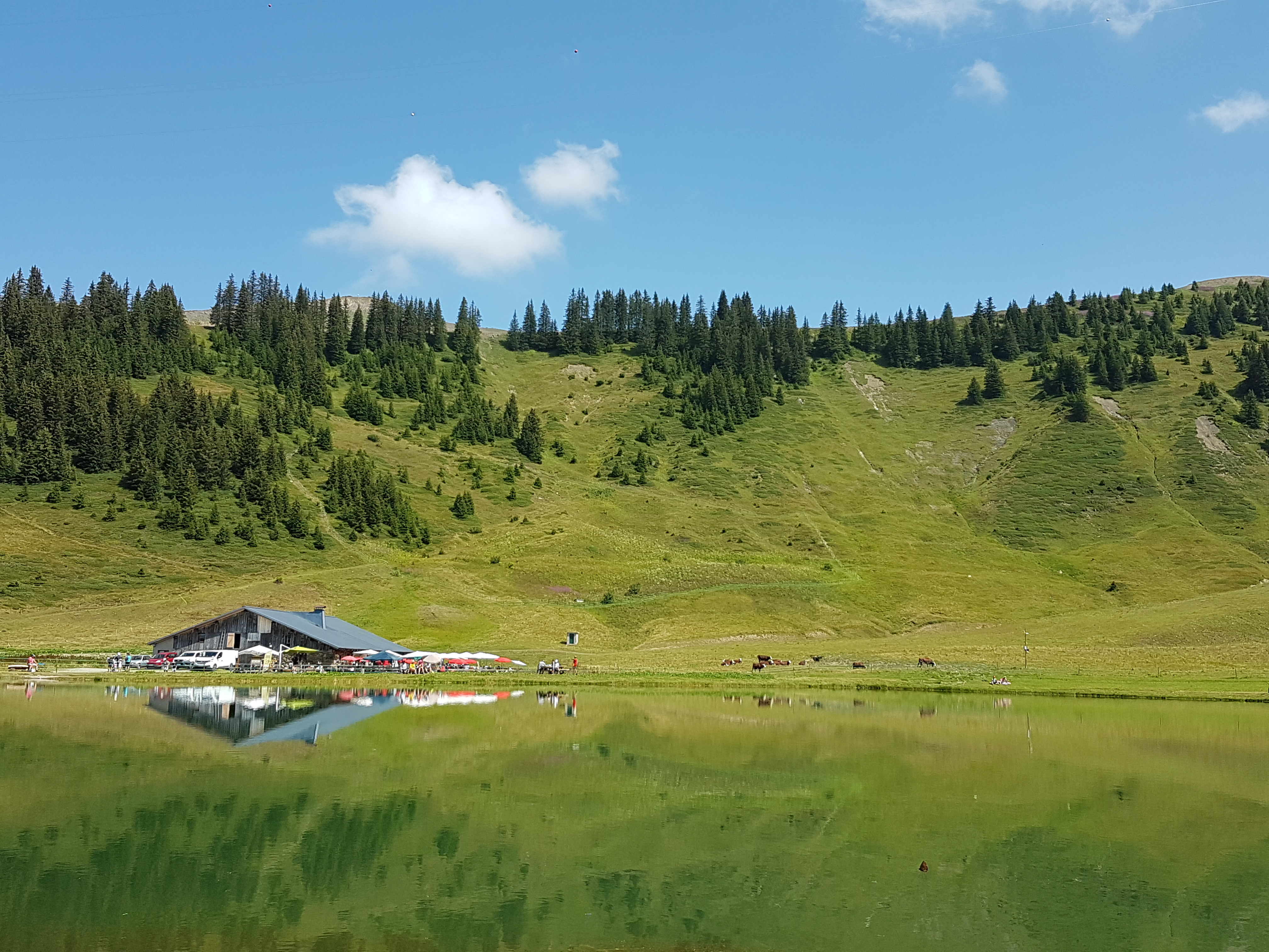 Magnifique ! Au milieu des alpages et près d un lac. Un resto atypique qui nous a enchanté