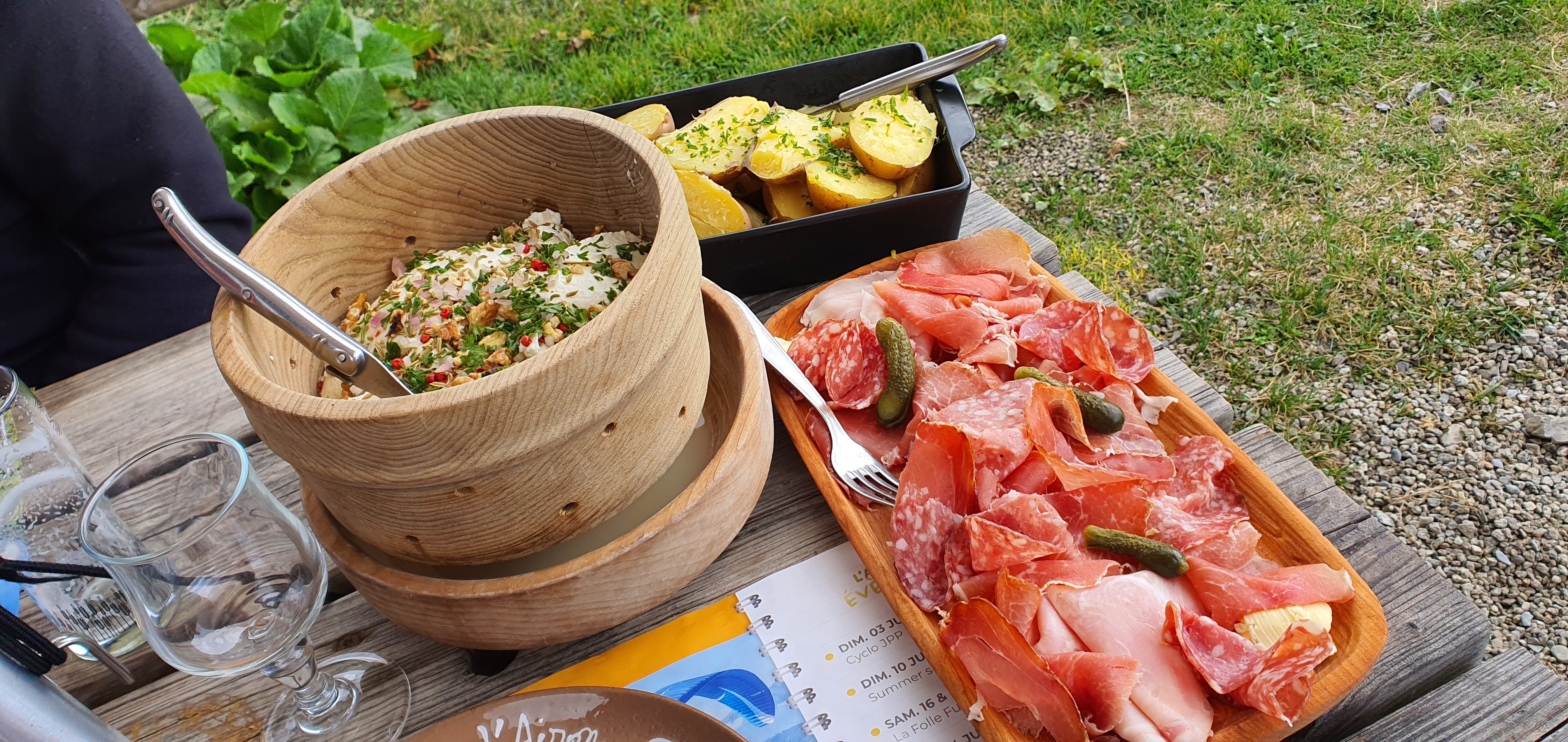 Sortie Alpage charcuterie fromage et beignet de pomme de terre. Juste genial