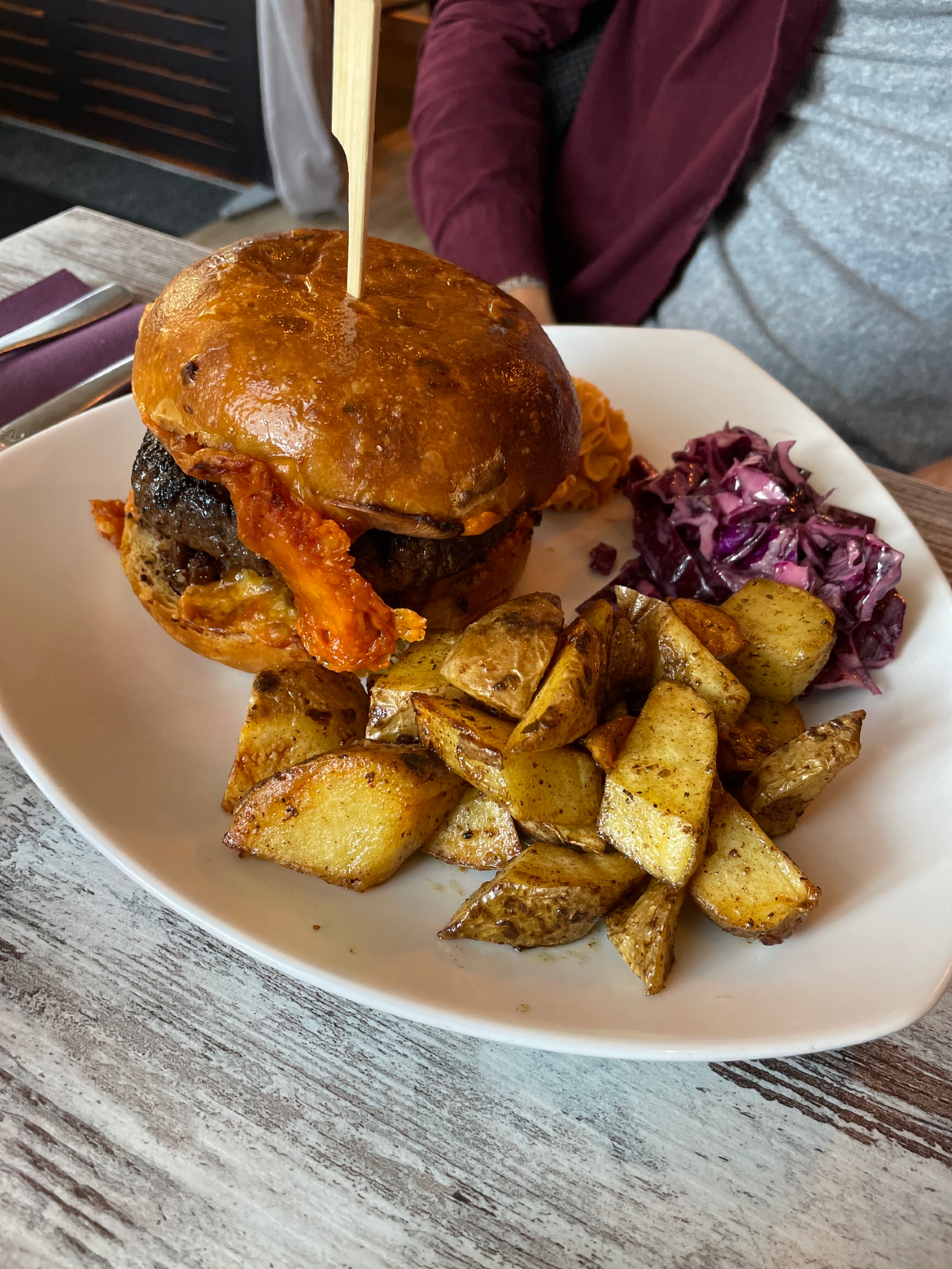 Posté le 21/01/2023 à 17:05"Nous sommes venus peut-être le mauvais jour quand je vois les avis. Burger trop cuit pas de fromages coulant. Viande grillée sur 1 côté et pomme de terre trop cuite. Aucune présentation soignée. Ça ne vaut pas le prix 😥. Dommage je pensais à mieux"