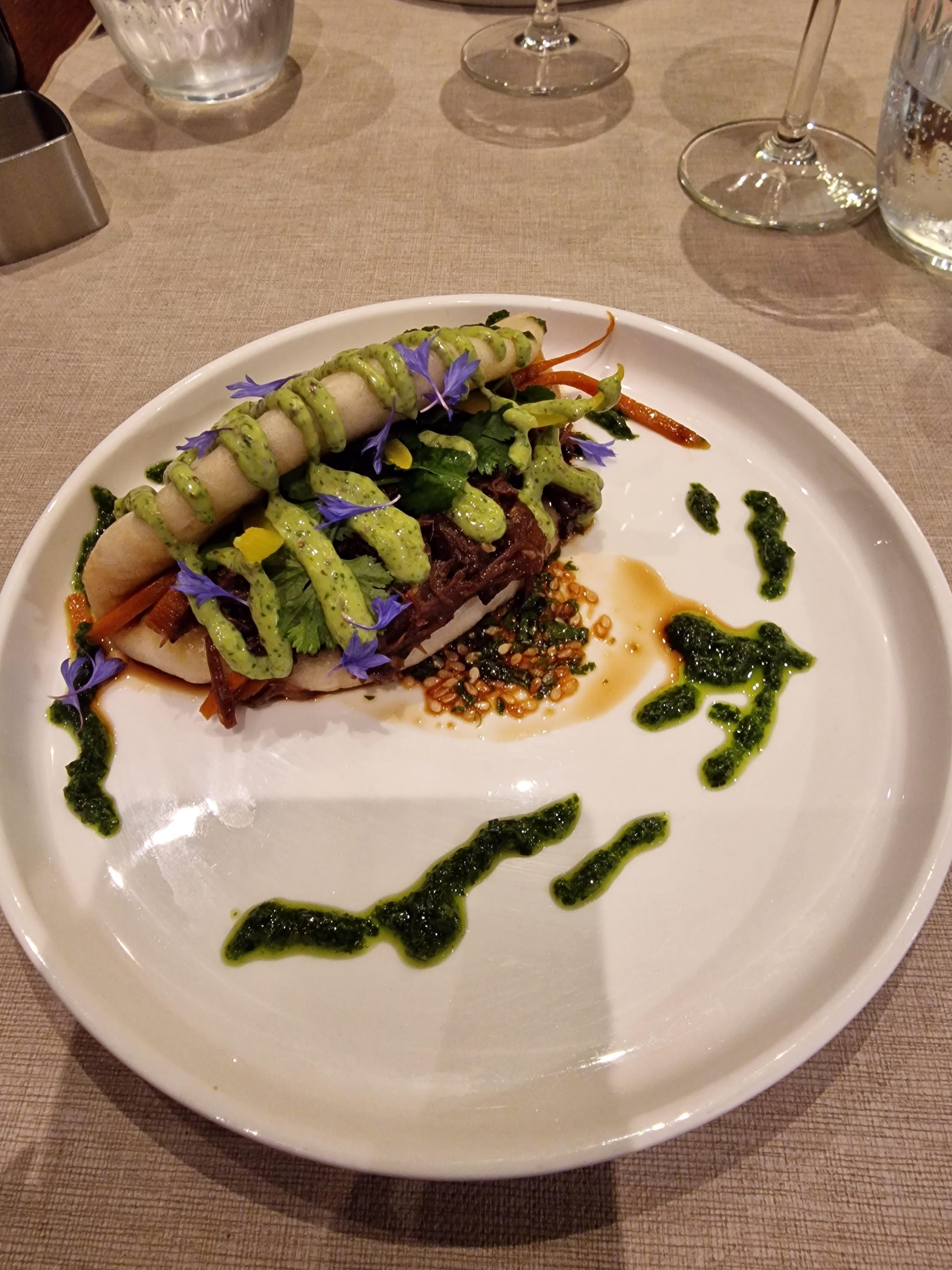 Petite déception. Énormément de gras dans la pièce de bœuf. Les desserts magnifiques dans la présentation mais pas extraordinaires en terme de saveur. Les prix sont disproportionnés par rapport aux plats proposés (40€ le plat/dessert et 12€ le verre de vin...) Le service était très bien.