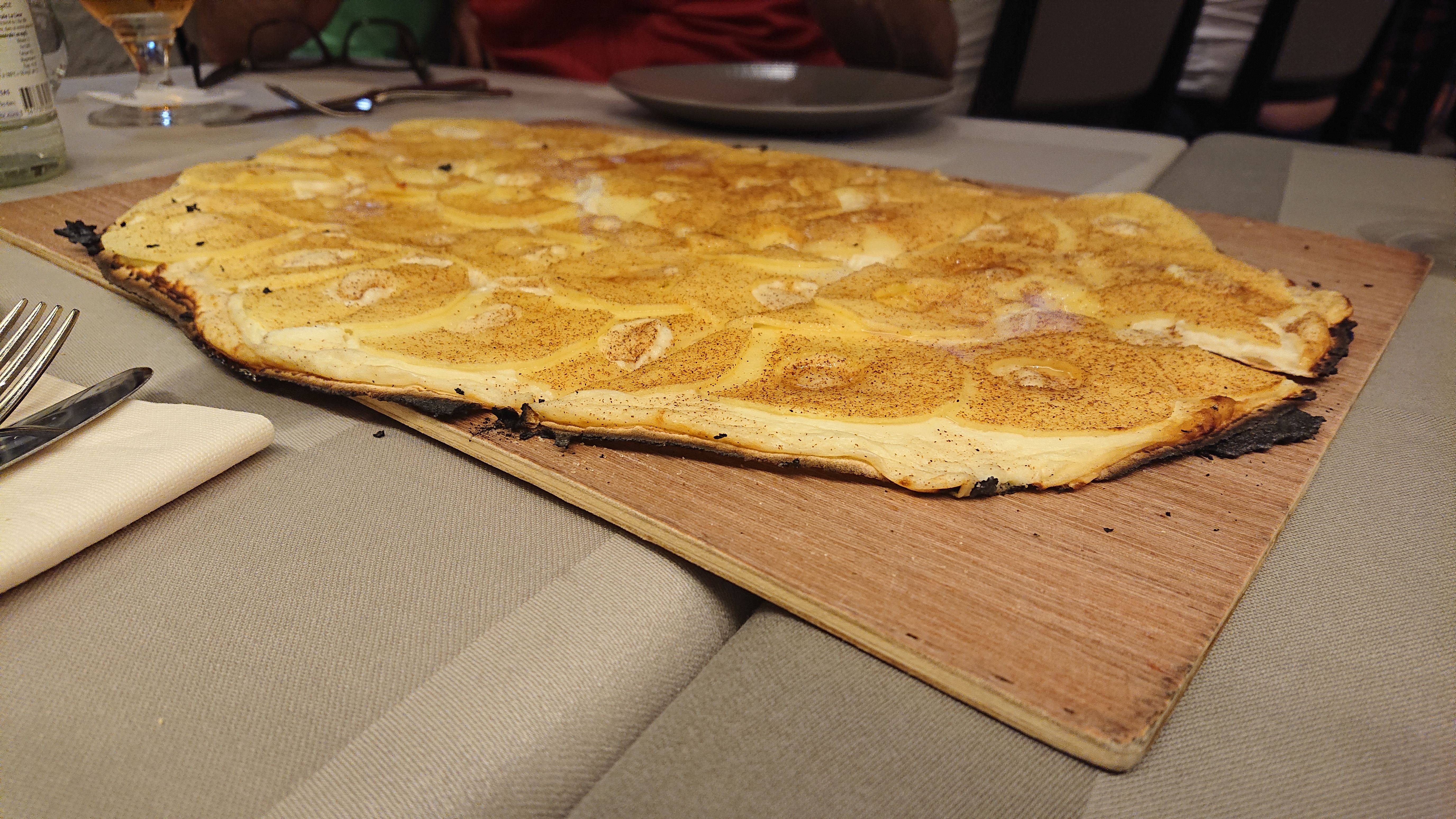 Une tarte flambée parfaite un service exeptionel la serveuse étais seul pour plus de 25 personnes avec des étages donc escaliers une ambiance bien cosi il manquait le dernier étage fermé en semaine rien de grave j'ai adoré j'y retournerais avec plaisirs