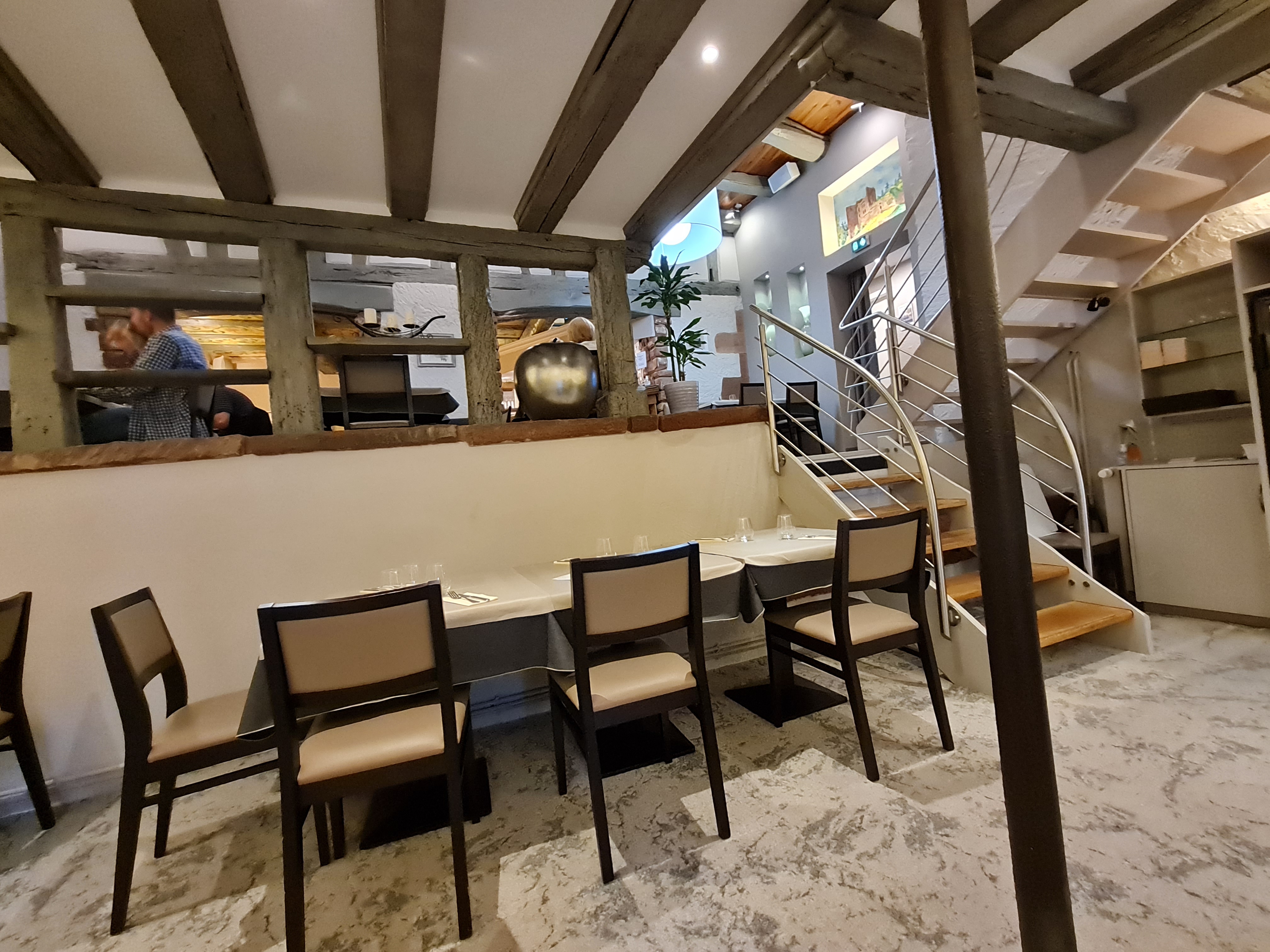 Très belle façade, bon accueil et très belle intérieure. Le midi, le menu du jour est très bon et à un prix raisonnable. Le soir uniquement, possibilité de commander les tartes flambées. Les plats sont très bien présentés et très bons. Les vins proposés sont également très bons dont un Auxerrois qui fut une très belle découverte.