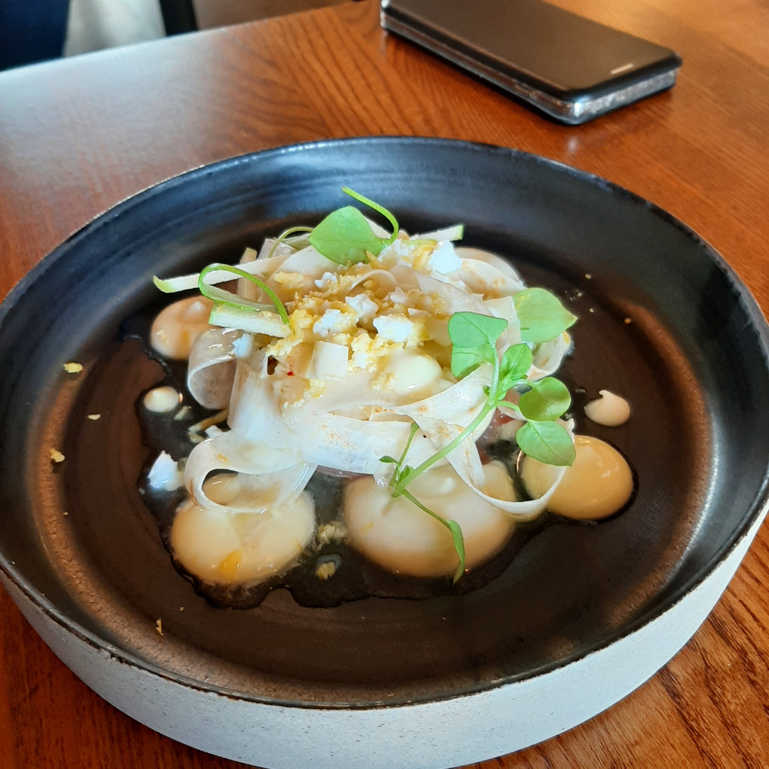 Posté le 15/08/2024 à 21:51"Nous avons passé une excellente soirée dans ce restaurant. Le menu dégustation est une petite merveille, tant en termes de saveurs que de l’originalité de la cuisine. Seul bémol , le service, trop lent et qui manque parfois de rigueur."