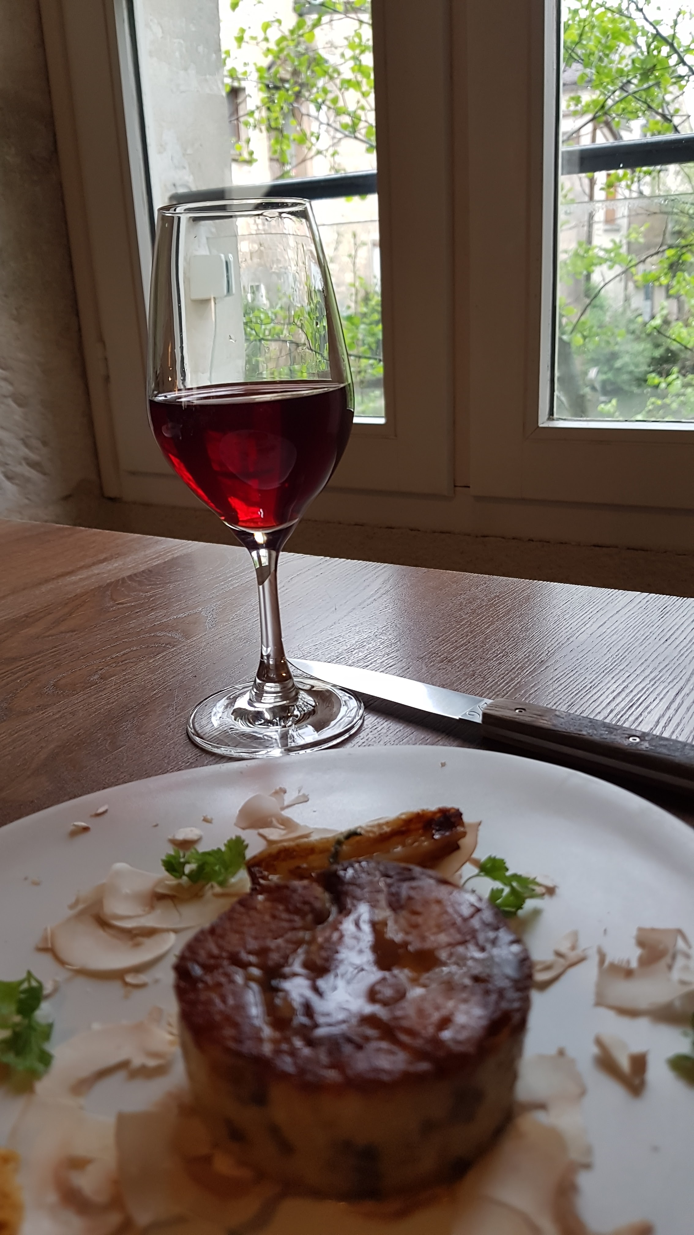 Cadre agréable mais nous avons été déçu par certaines choses comme : - A notre arrivée, on nous a installé à notre table accompagné de la carte des vins mais pas celle des menus. C'est en repartant que nous avons vu les cartes des menus dans un coin. - les deux premières entrées étaient très bonnes et bien travaillées. - Le plat avec le lapin n'étaient pas à notre goût car nous ne sommes pas friands de ce type de viande mais comme nous n'avions pas eu la carte on ne savait pas à quoi s'attendre. Et le plat manqué aussi un peu d'accompagnement. - Le temps d'attente entre l'entrée et le plat était très longue (1 heure). - Pour le dessert, l'un de nous 2 n'aime pas du tout le réglisse et l'autre n'aime pas le café...donc une fois de plus pas de carte donc surprise...