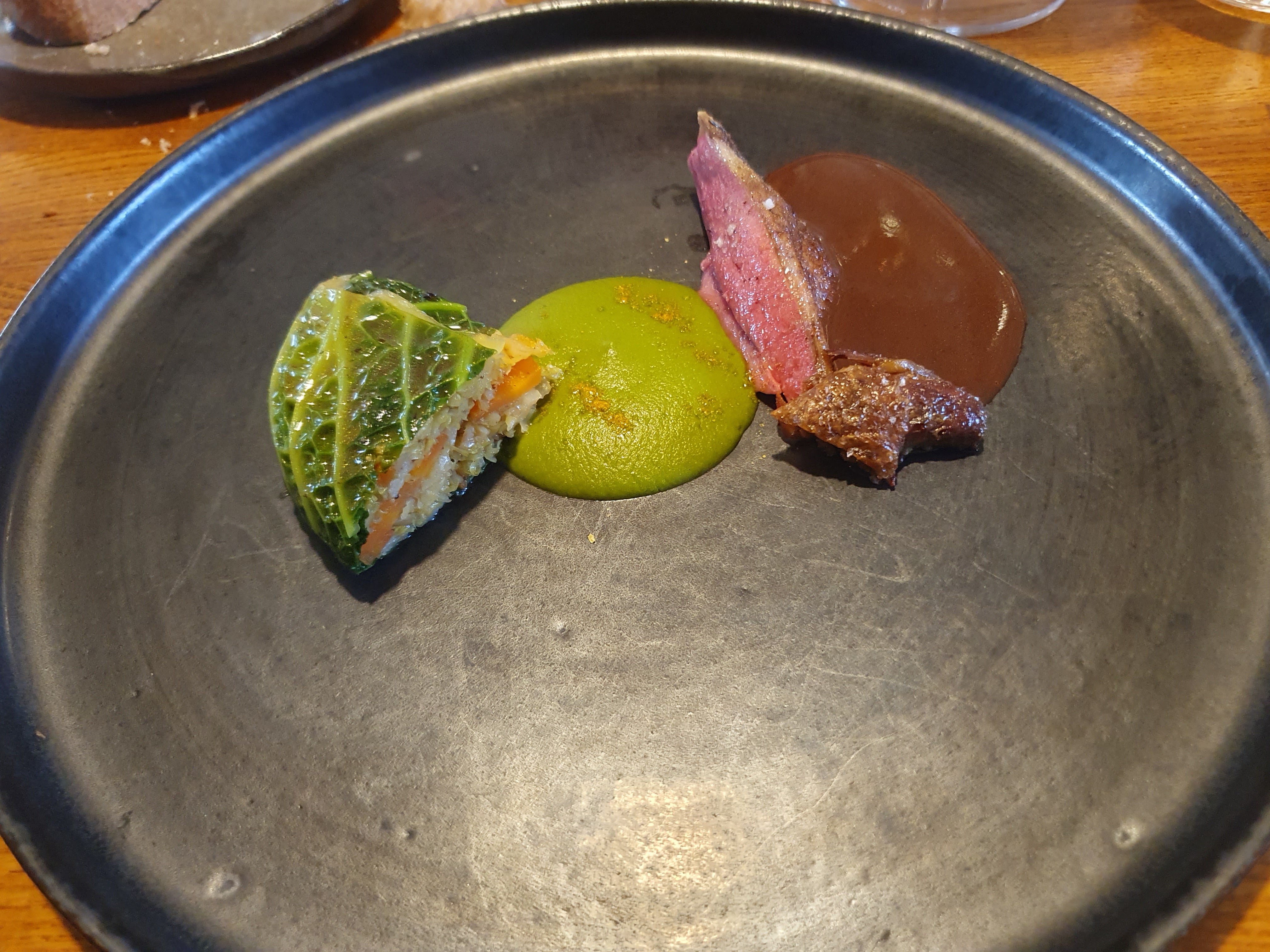 Cadre très agréable et menu dégustation aussi excellent qu'original. Les saveurs sont subtiles et hors du commun. Le service n'est pas encore à la hauteur de cette excellente cuisine. Alors que le menu nous était inconnu (ce qui n'est en soi pas un soucis) nous aurions aprécié quelques conseils sur les vins les plus adéquats à consommer, de plus n'étant pas très douceurs nous aurions aprécié qu'on nous demande si nous voulions plutôt du fromage. Ces petites adaptations ne nous ont cependant pas gâché cette très agréable expérience que nous allons certainement rééditer.