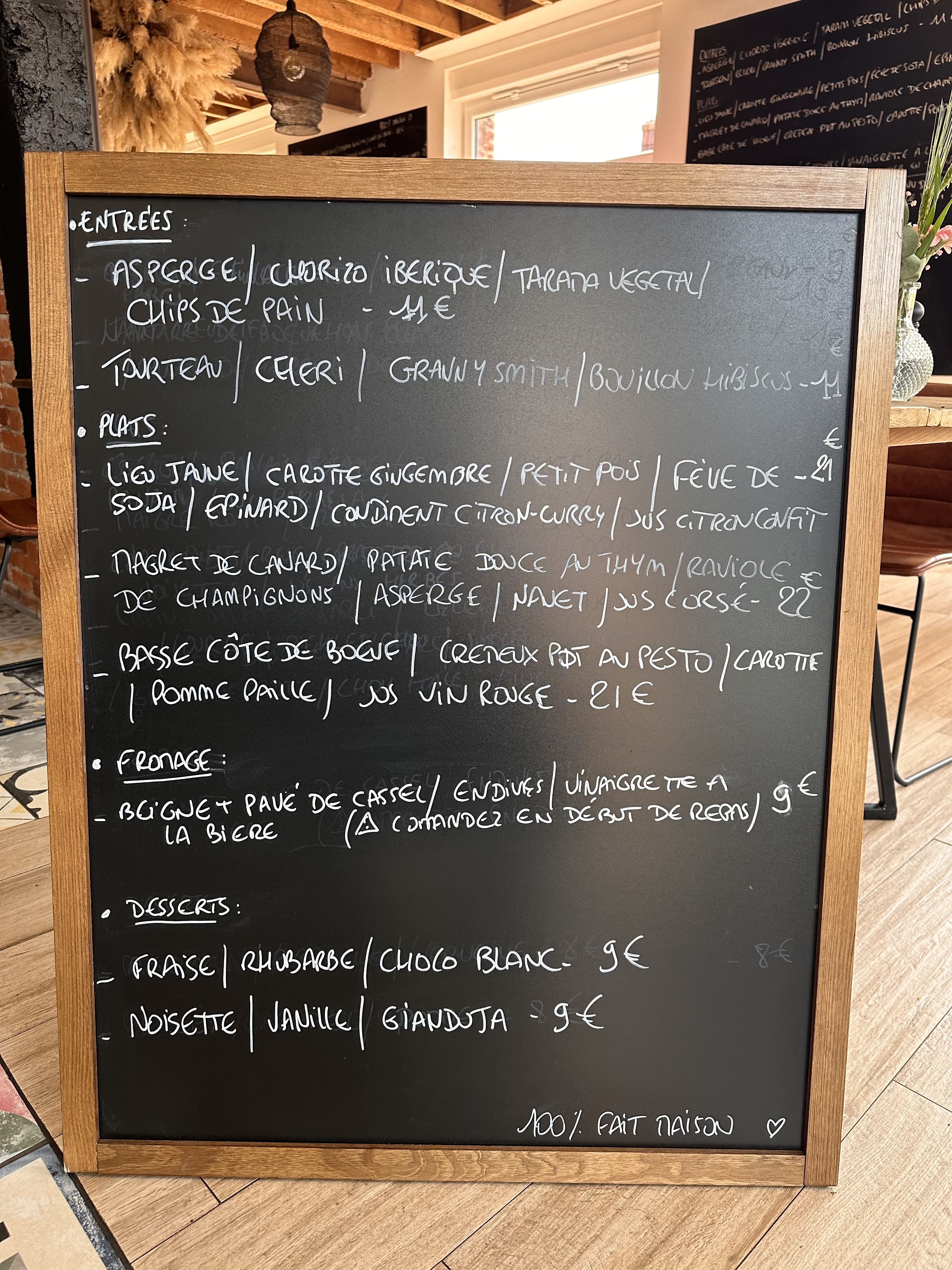 On a aimé cette déco travaillée et moderne, l'esprit estaminet est conservé. Côté carte des plats typiques, délicieux Oui il n'y a que quelques plats à la carte mais peu importe la qualité l'emporte largement.