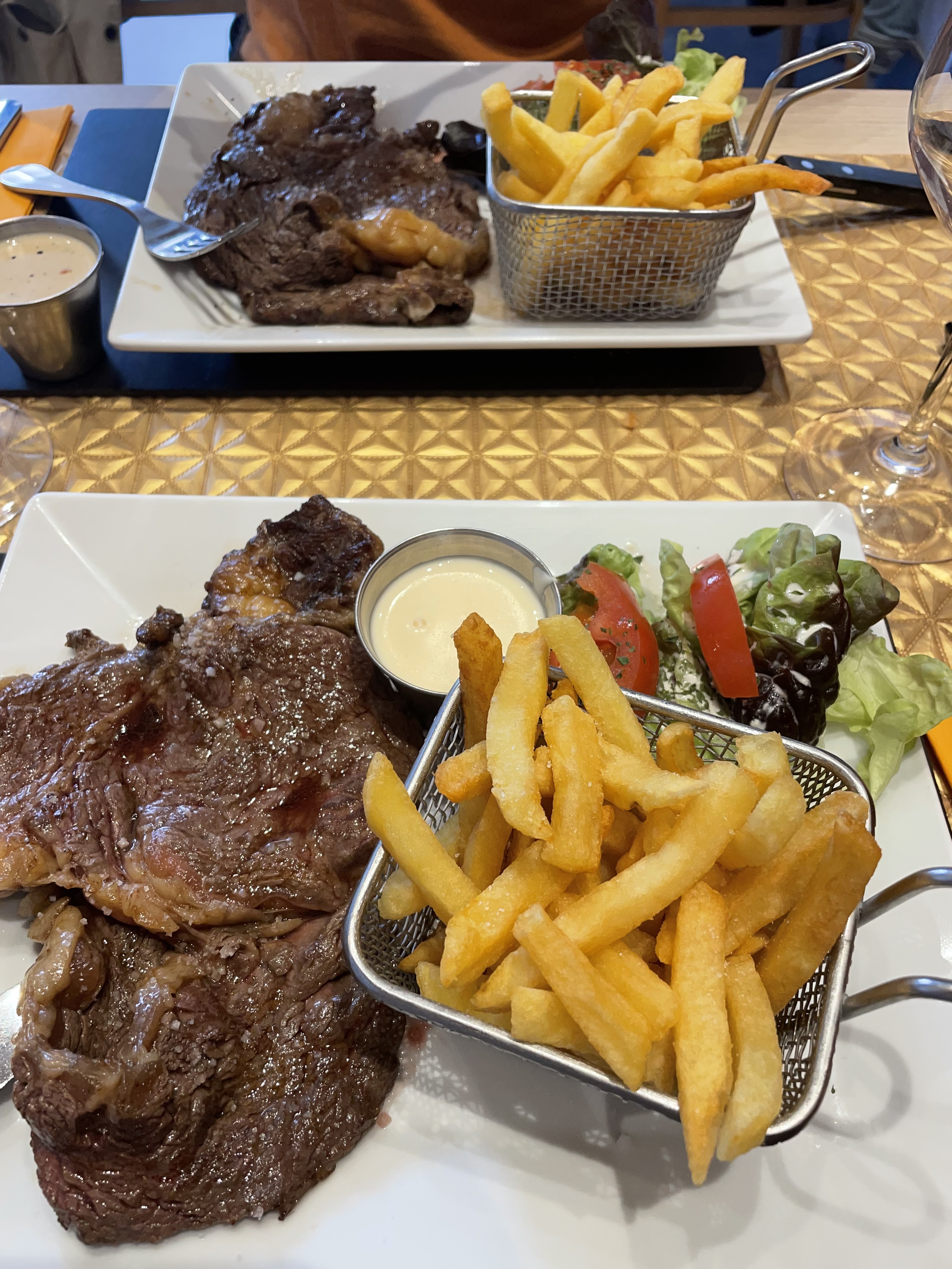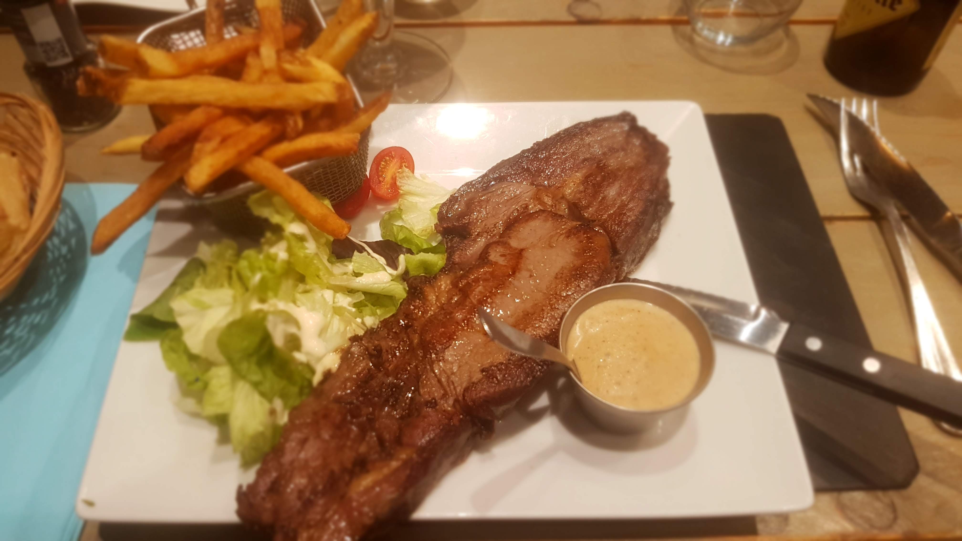 Excellent repas (entrecôte normale et une entrecôte maturee). Maîtrise parfaite des cuissons, le pain et l écrasé de pomme de terre étaient très bons, ainsi que le dessert. SIMPLE DELICIEUX ET ABORDABLE.