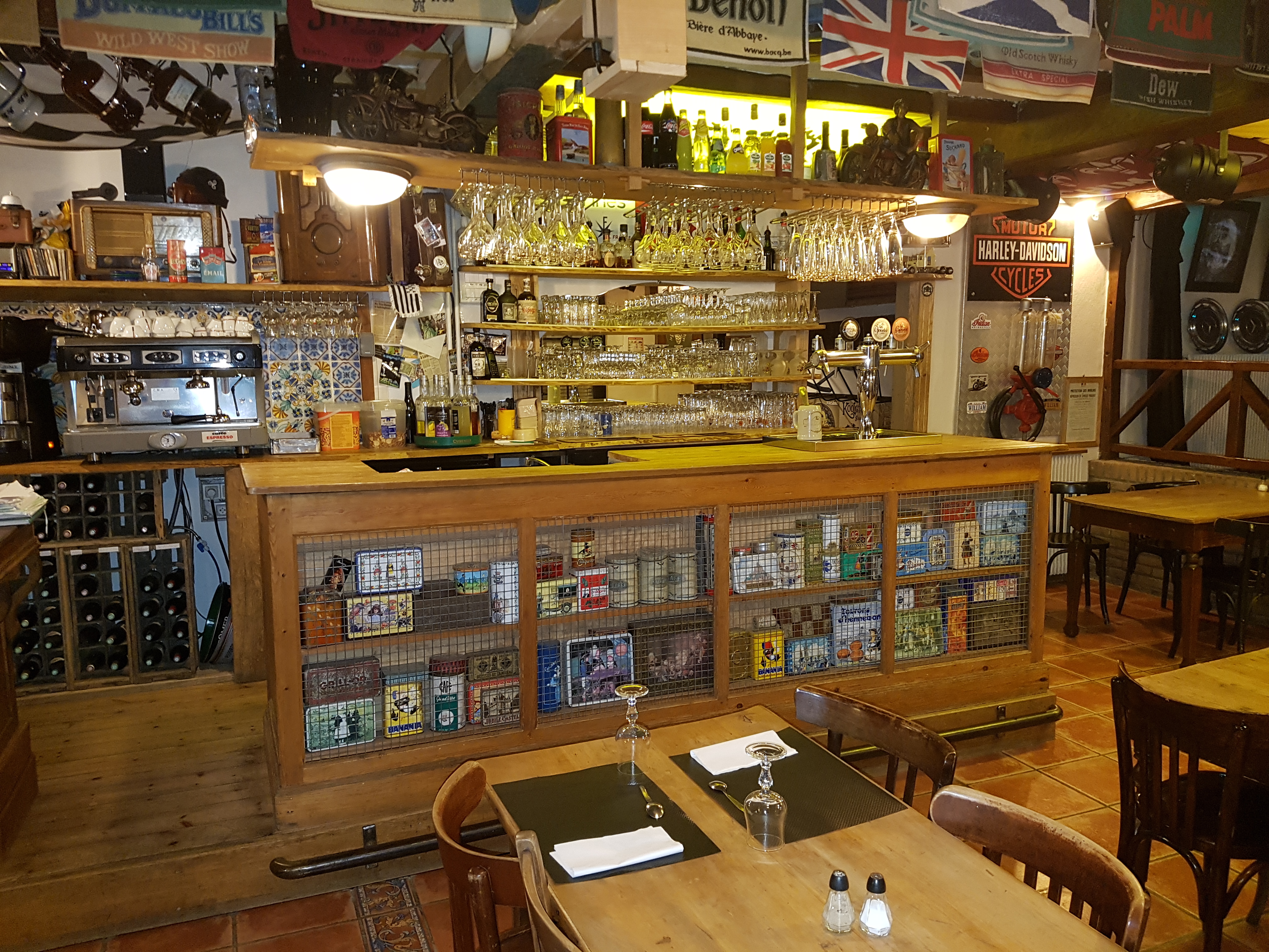 Cet estaminet a une décoration très typique et à l'esprit biker. Nous y sommes allés en couple un samedi soir. La carte est généreuse et typique de la gastronomie locale. La carte des boissons était riche et variée. Elle étanchera toutes les soifs. Les plats étaient excellents et copieux. Les serveuses étaient efficaces attentionnées et souriante. Un très bon moment au trou flamand