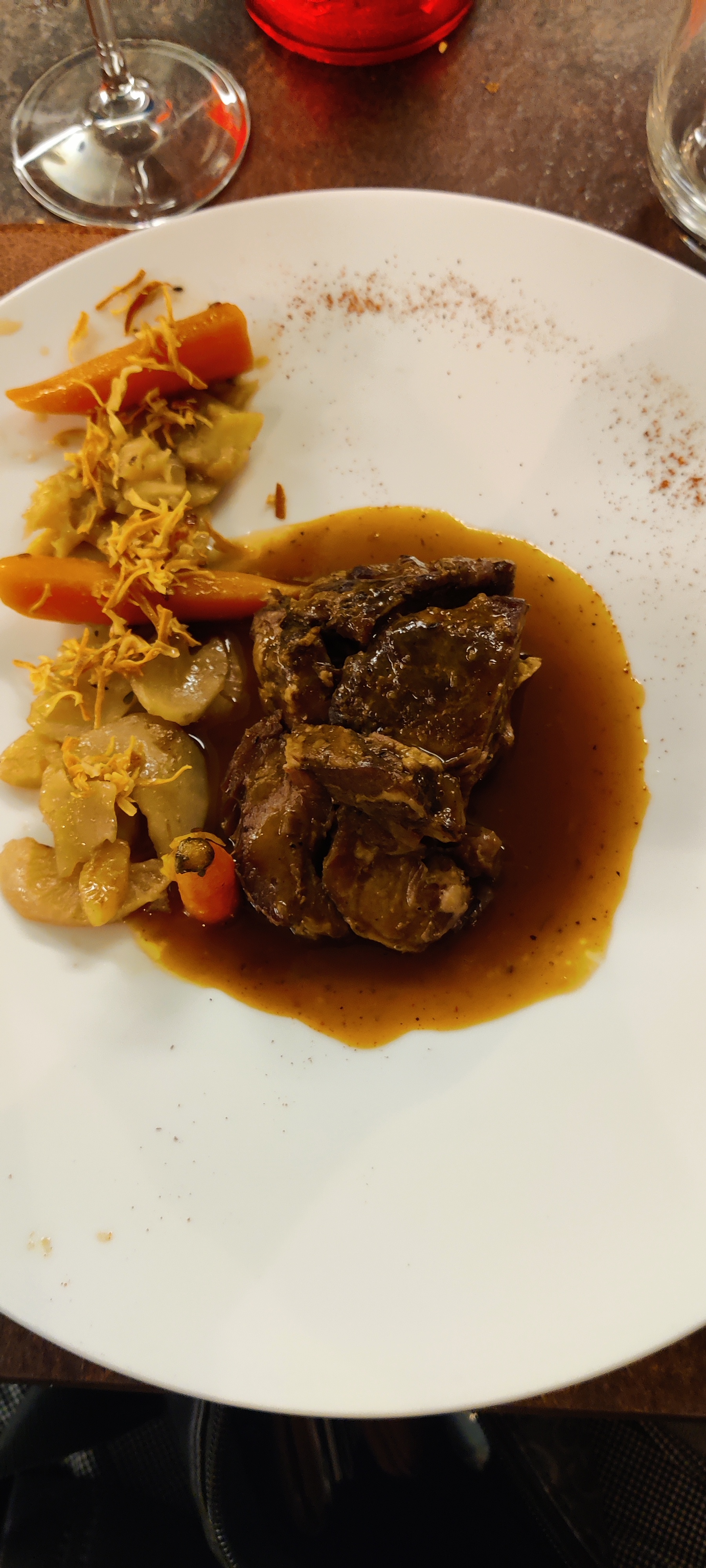 Lieu chaleureux, service à la hauteur, patience, entrée et dessert excellents, un bémol sur le plat principal (basse côte extrêmement grasse) et malgré une réclamation, silence radio... dommage, on regrette de ne pas avoir pris le poisson. Un autre constat très négatif en ce qui nous concerne, la carte propose des produits issus de la chasse, c'est très regrettable à notre époque.