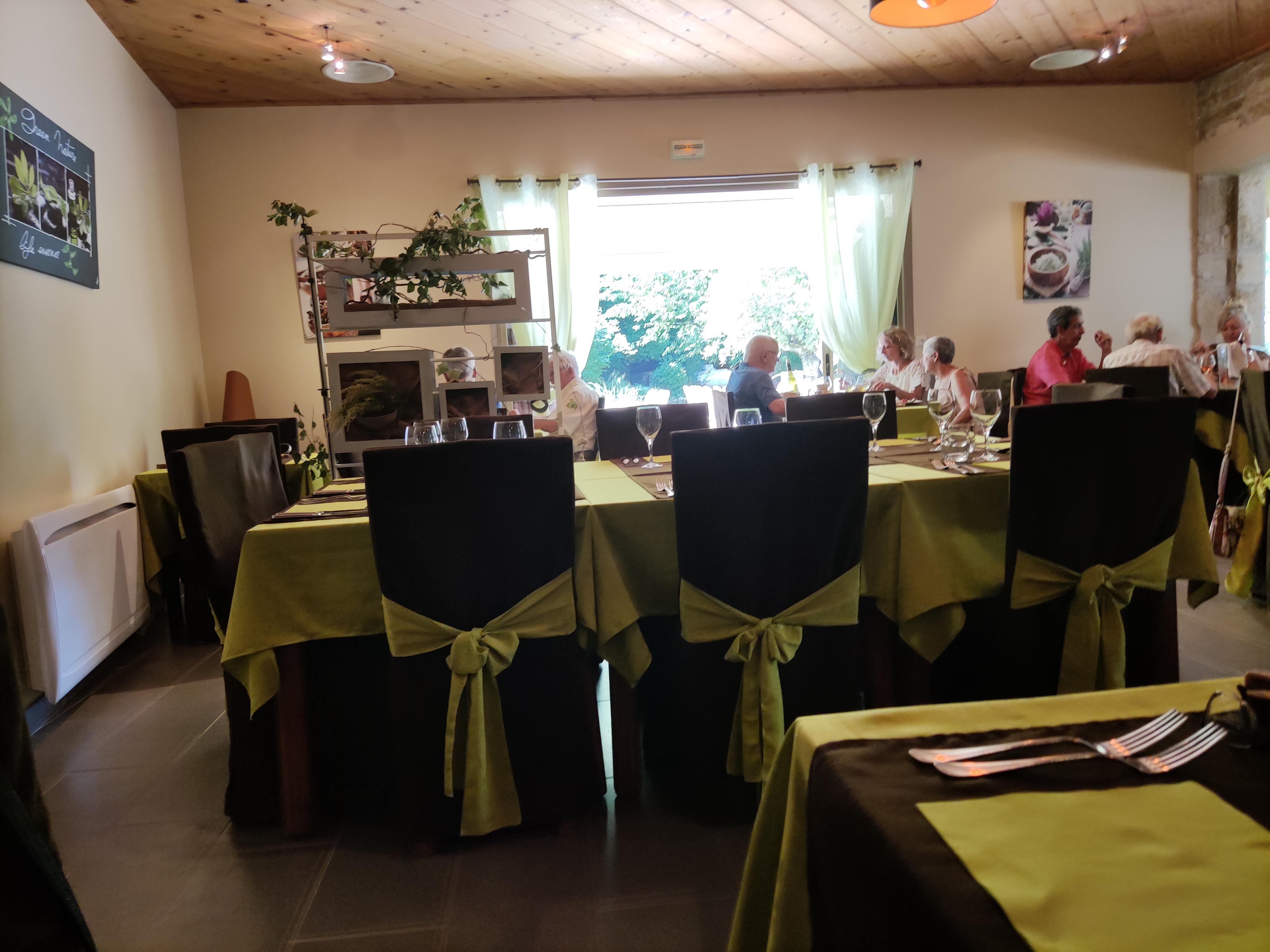 Accueil pas très accueillant,cuisine bof petit conseil végétarien passer votre chemin le seul bon coter est le visuel du restaurent et et le jardin et dituer dans un très jolie village autre petit conseil rappeller bien deux fois pour être sûr si vous êtes végétarien.