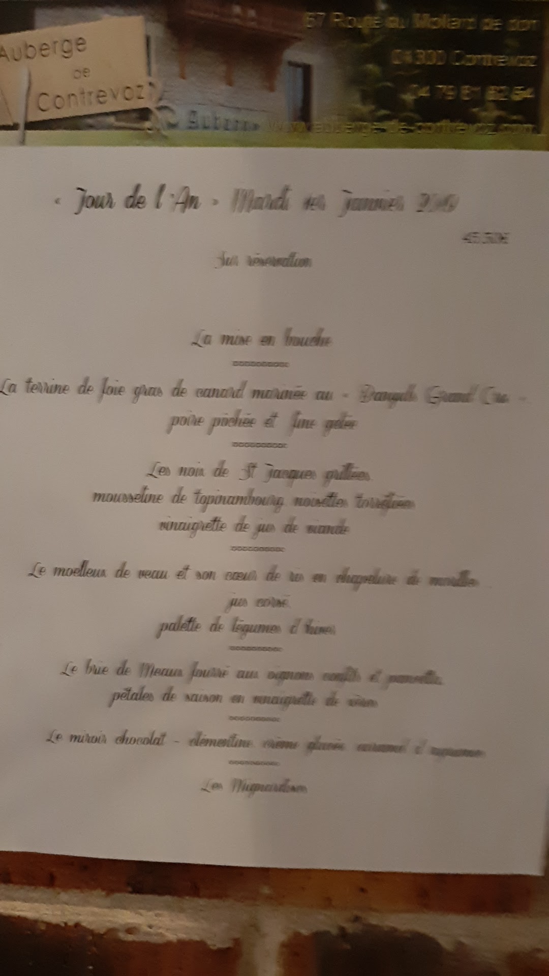 O TOP ! un menu festif en ce 1er de l’an abordable, d’excellente qualité, dans une ambiance agréable, au service sans reproche ! Et si nous en faisions notre adresse favorite pour célébrer la nouvelle année ??? NE CHANGEZ SURTOUT RIEN ! Bons vœux de succès, de pérennité, bon vent, quoi !….