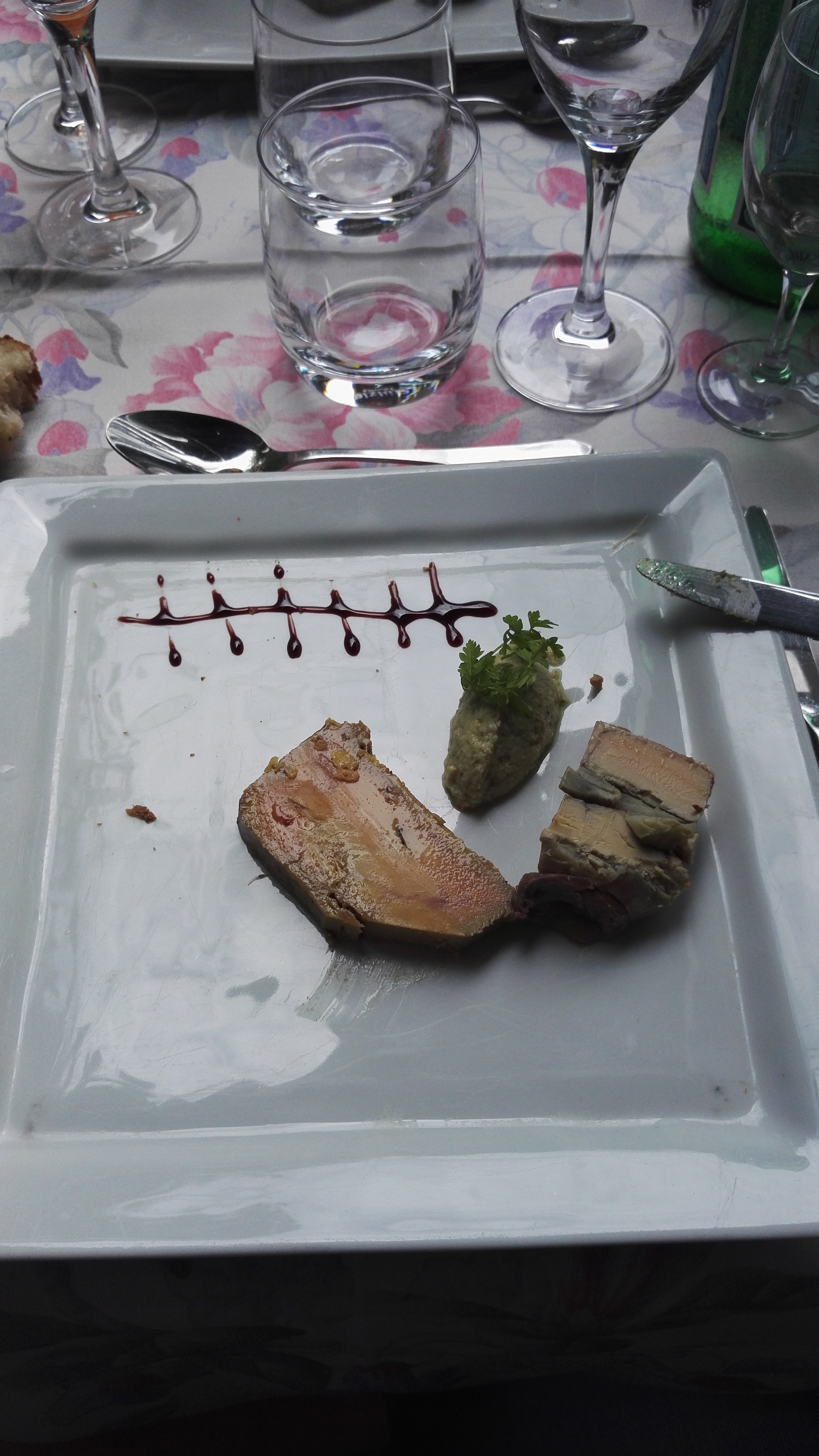 très bon accueil, j'ai trouvé la terrine un peu fade mais l'accompagnement la relève bien malgré tout. Le poisson était excellent et l'épeautre très bien cuit. Les trois fromage aussi.J'ai bien aimé le dessert le croquant avec la pomme. Coté vin nous avons accompagné tout ça d'un rosé du bugey qui s'est avéré un peu léger mais bon quant même.J'ai apprécié les petites gourmandises avec le kir et avec le café.La serveuse a été très sympathique ainsi que sa petite main. Je recommande