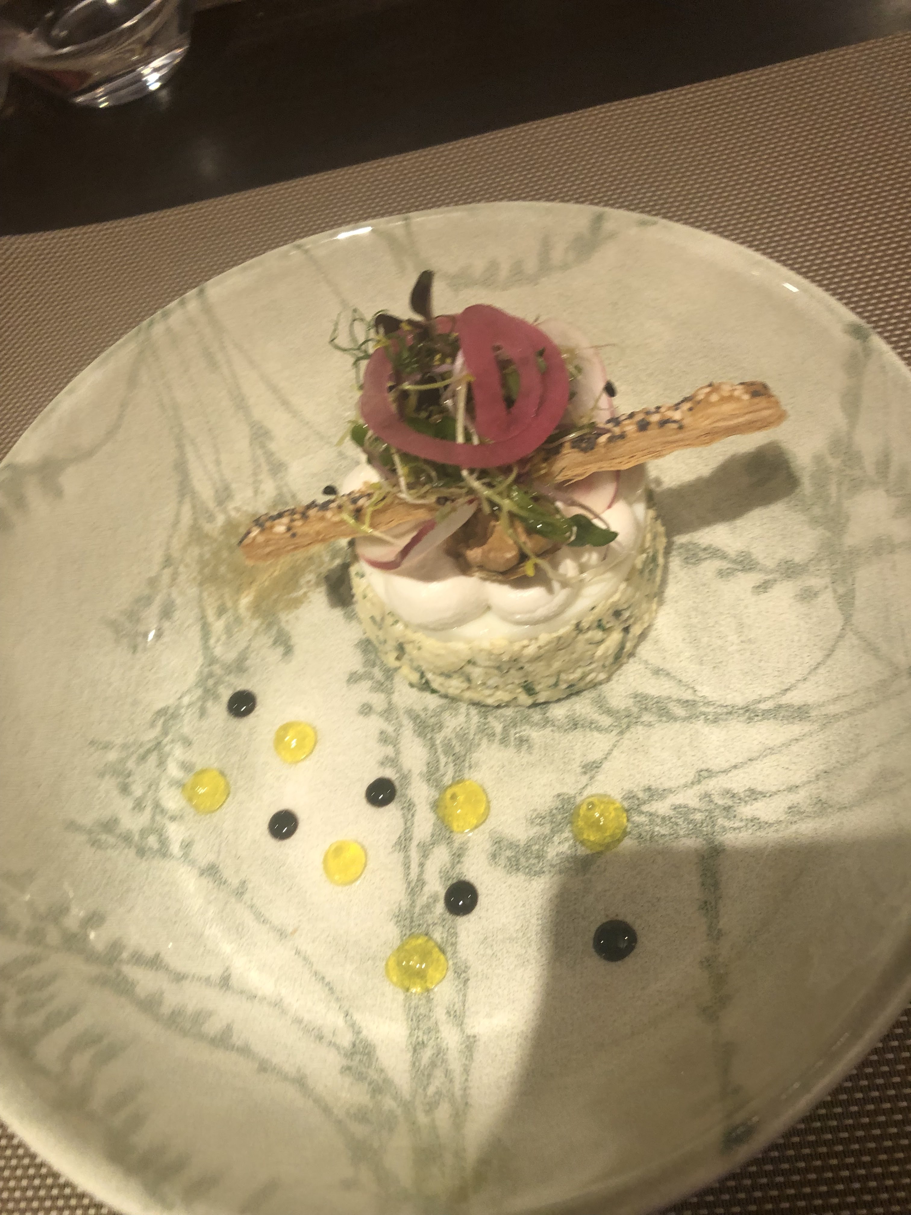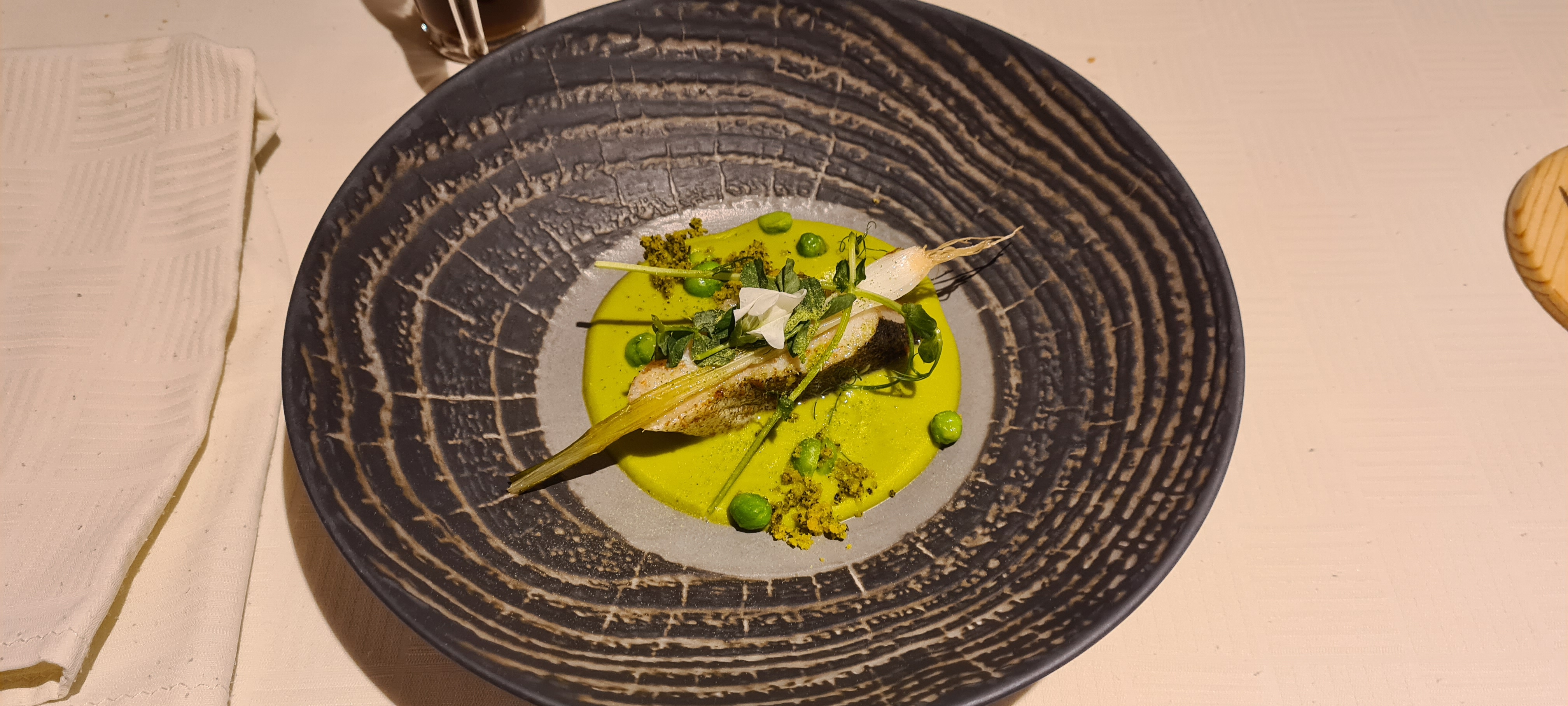 Belle découverte dans un beau cadre avec de l espace entre les tables.. magnifique présentation originales des plats,pour ce qui es de la cuisine,rien à redire ,tout etaient tres delicieux...bravo à toute l equipe