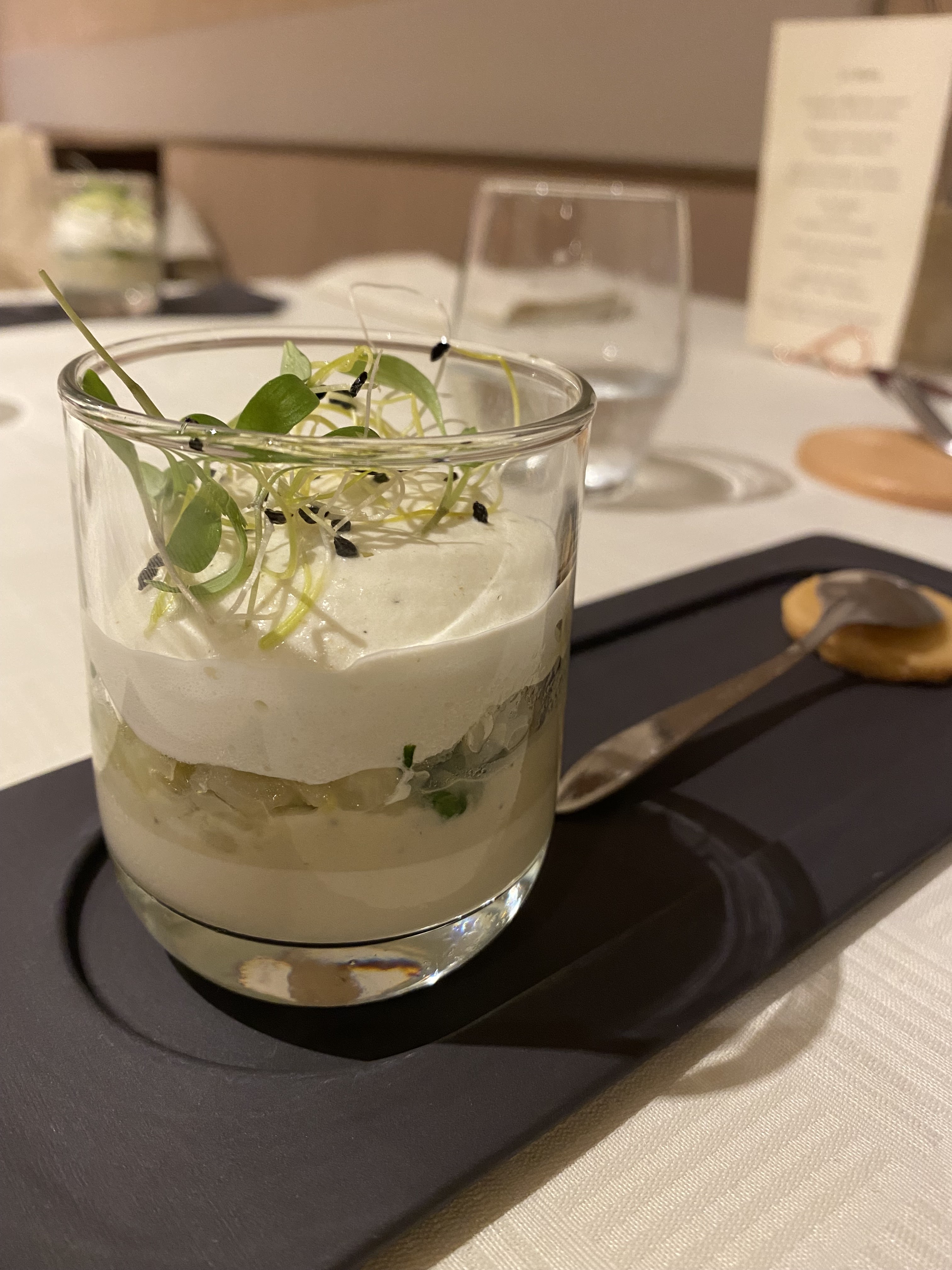 Que dire....Nous avons fait un voyage culinaire exceptionnel. De l'apéritif au dessert tout était parfait . Une maîtrise totale des saveurs, des accords et des dressages . Le personnel est d'une gentillesse et la décoration très cosy . Ce menu unique est d'un rapport qualité/prix juste incroyable. Merci à vous pour ce moment d'exception.