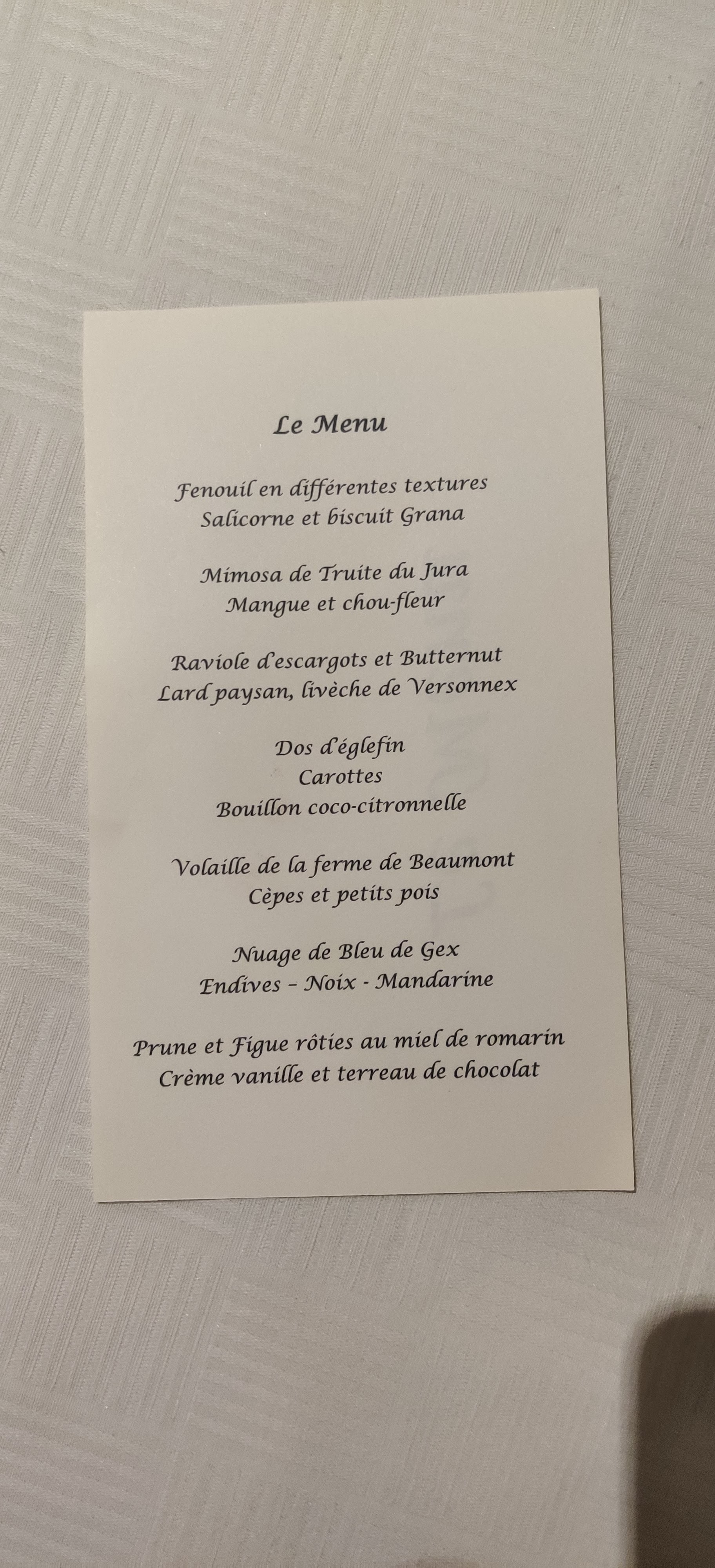 Excellente découverte! Cuisine savoureuse et goûteuse , excellente rapport qualité / prix. Service discret et attentionné. Nous regrettons de ne pas avoir découvert cette table plus tôt !! - l ensemble de notre table de 7 convives a apprécié le moment et se réjouit de découvrir le prochain menu d hiver!