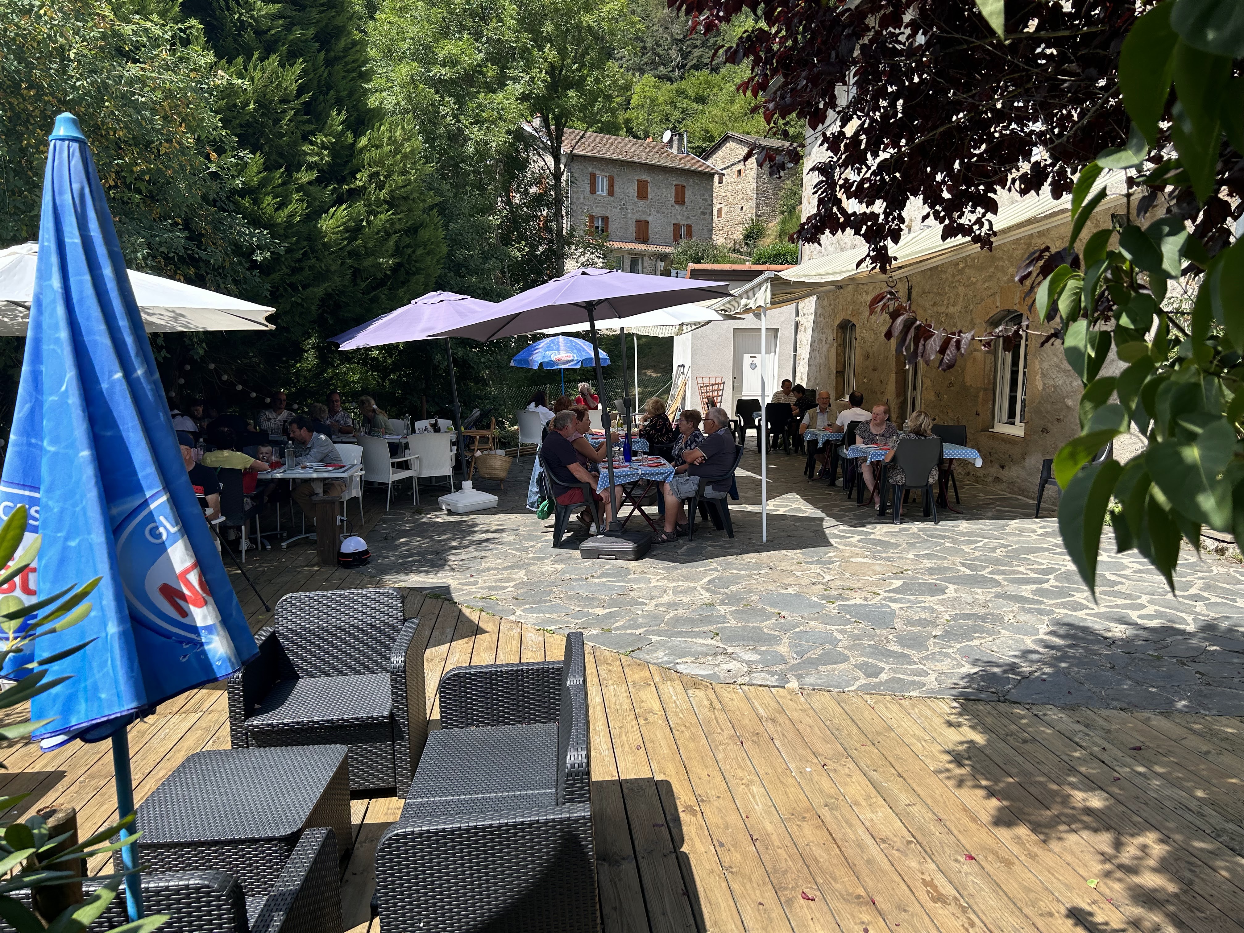 Posté le 27/06/2022 à 05:28"Terrasse très agréable à l'ombre et au calme dans le charmant village de Bonneval Haute-Loire sous La Chaise-Dieu"