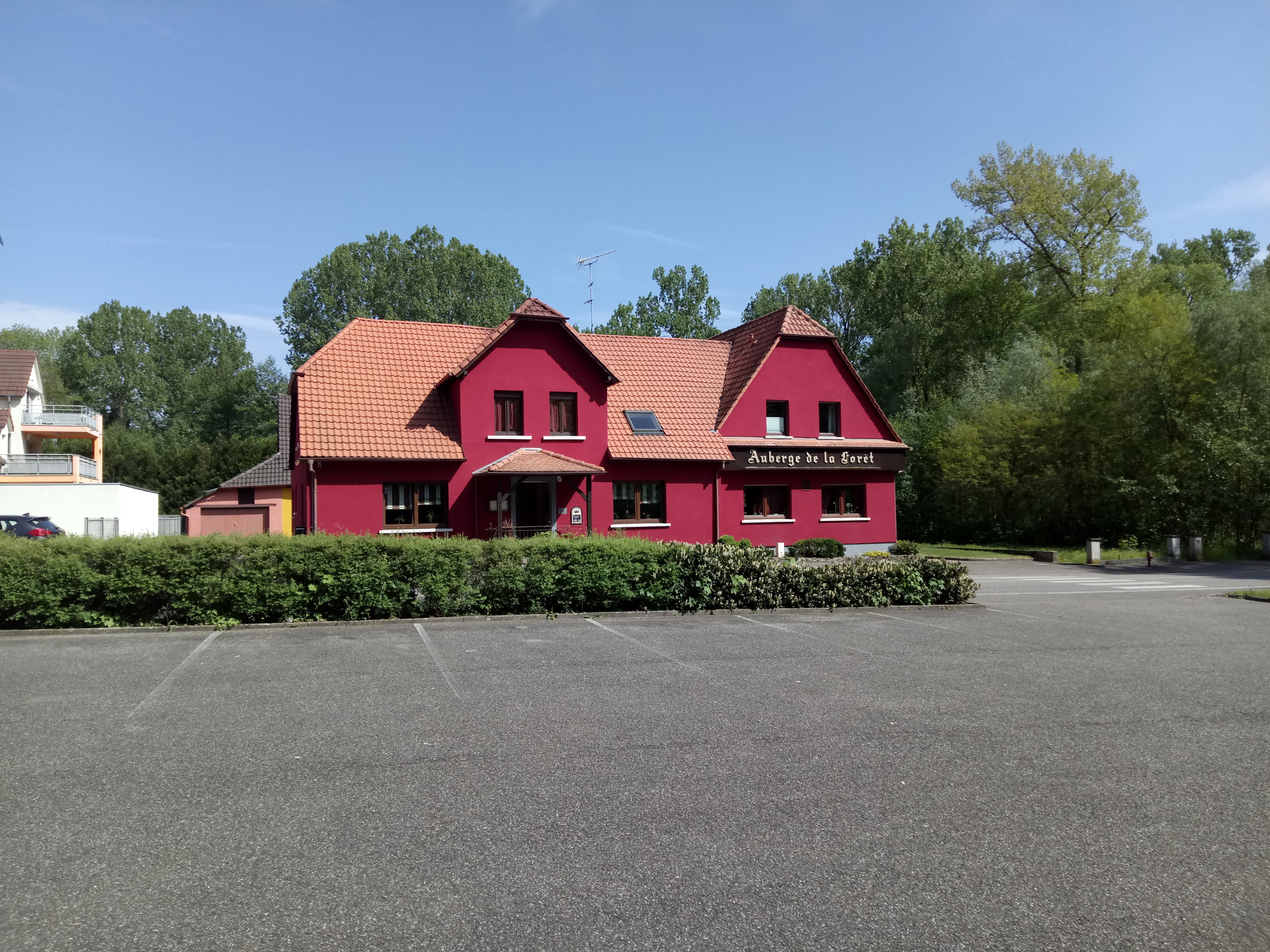 L'Auberge est très bien situé dans la forêt. Il y a suffisamment de places de parking De la gare de Seltz, il est à 15 minutes à pied