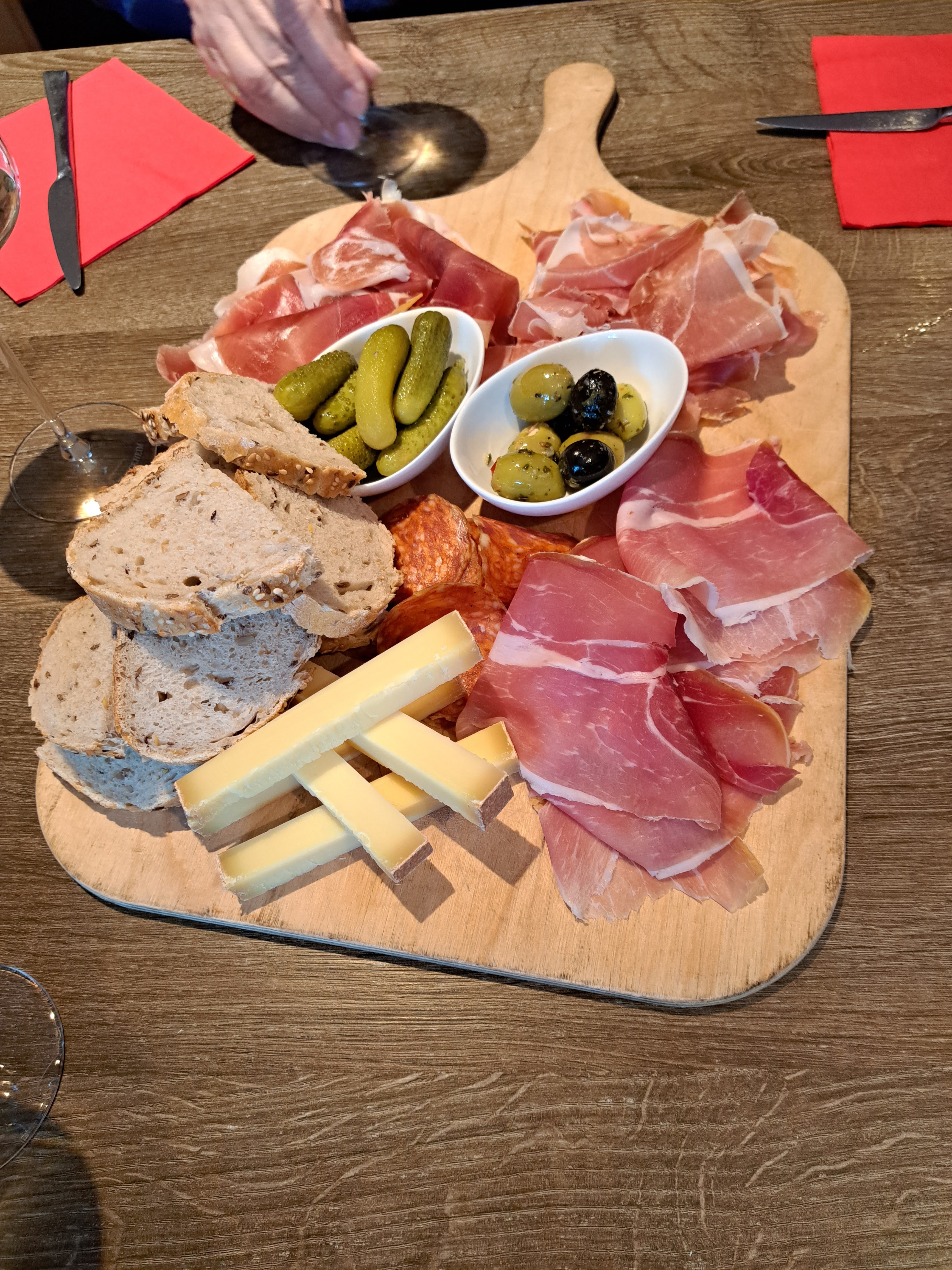 Je me suis arrêté pour un apéritif et j'ai demandé une collation ou une assiette. Seule la tarte flambée était proposée, mais comme nous avions déjà prévu de la faire le soir, nous avons décliné. Ensuite, on nous a gentiment proposé une assiette avec 3 types de jambon différents et nous l'avons accepté avec enthousiasme (malheureusement sans demander le prix). Quand nous avons reçu la facture, nous avons été vraiment choqués - 60 euros pour l'assiette, vraiment ??? Le patron est personnellement sorti de la cuisine et nous a insultés en nous demandant si nous savions de quel type de jambon il s'agissait et en Suisse une assiette comme celle-là coûte 24 CHF ! Hein, mais nous sommes en Alsace...! Il a remarqué que nous étions suisses et nous a complètement arnaqués ! Alors chers Suisses, veillez à vous garer à l'extérieur de l'enceinte du restaurant. Tout simplement scandaleux et absolument pas propice à la région touristique par ailleurs extrêmement hospitalière de l'Alsace.