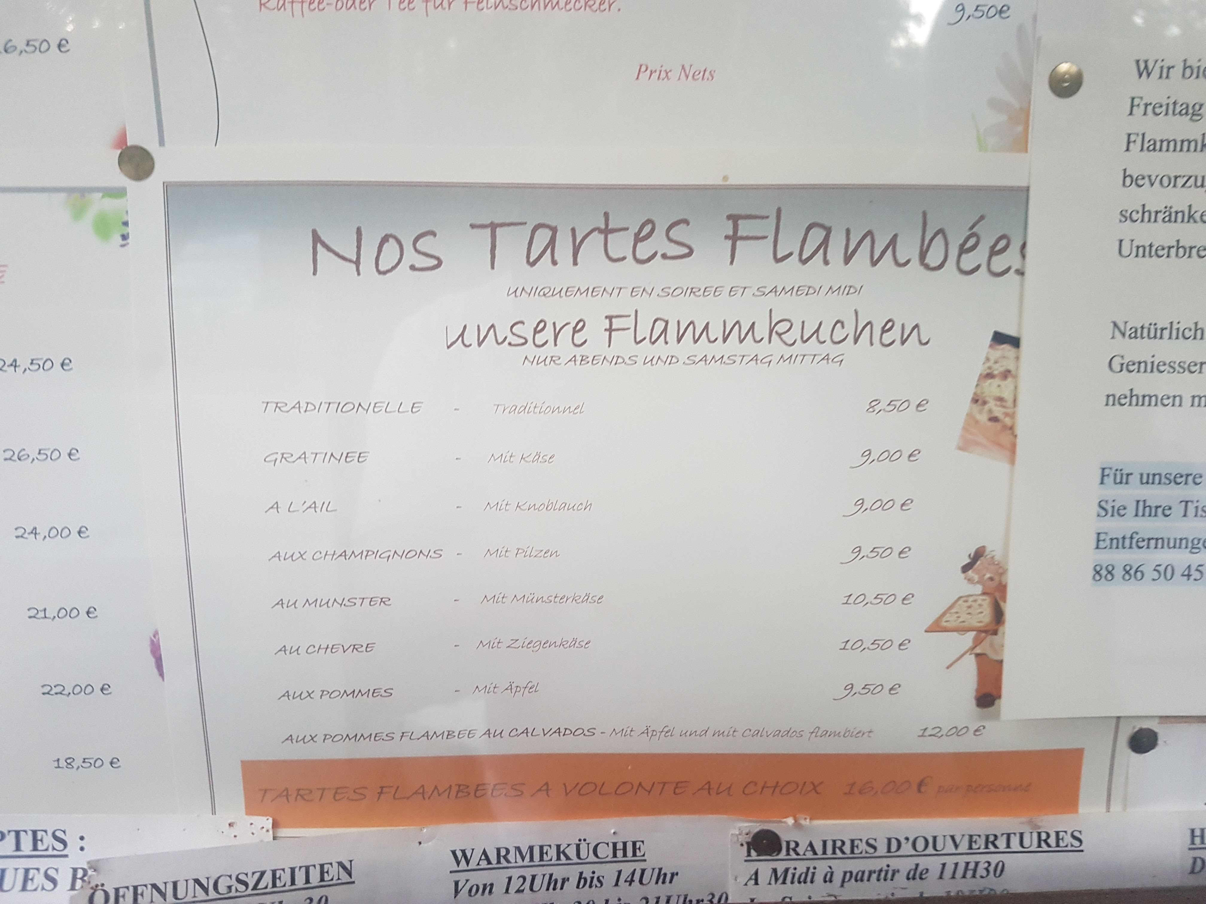 Attention pas de menu affiché à l'extérieur sur le site internet il y a des photos mais encore une fois en Alsace du Nord il n'y a rien de tout ça quand vous arrivez c'est pas le seul restaurant