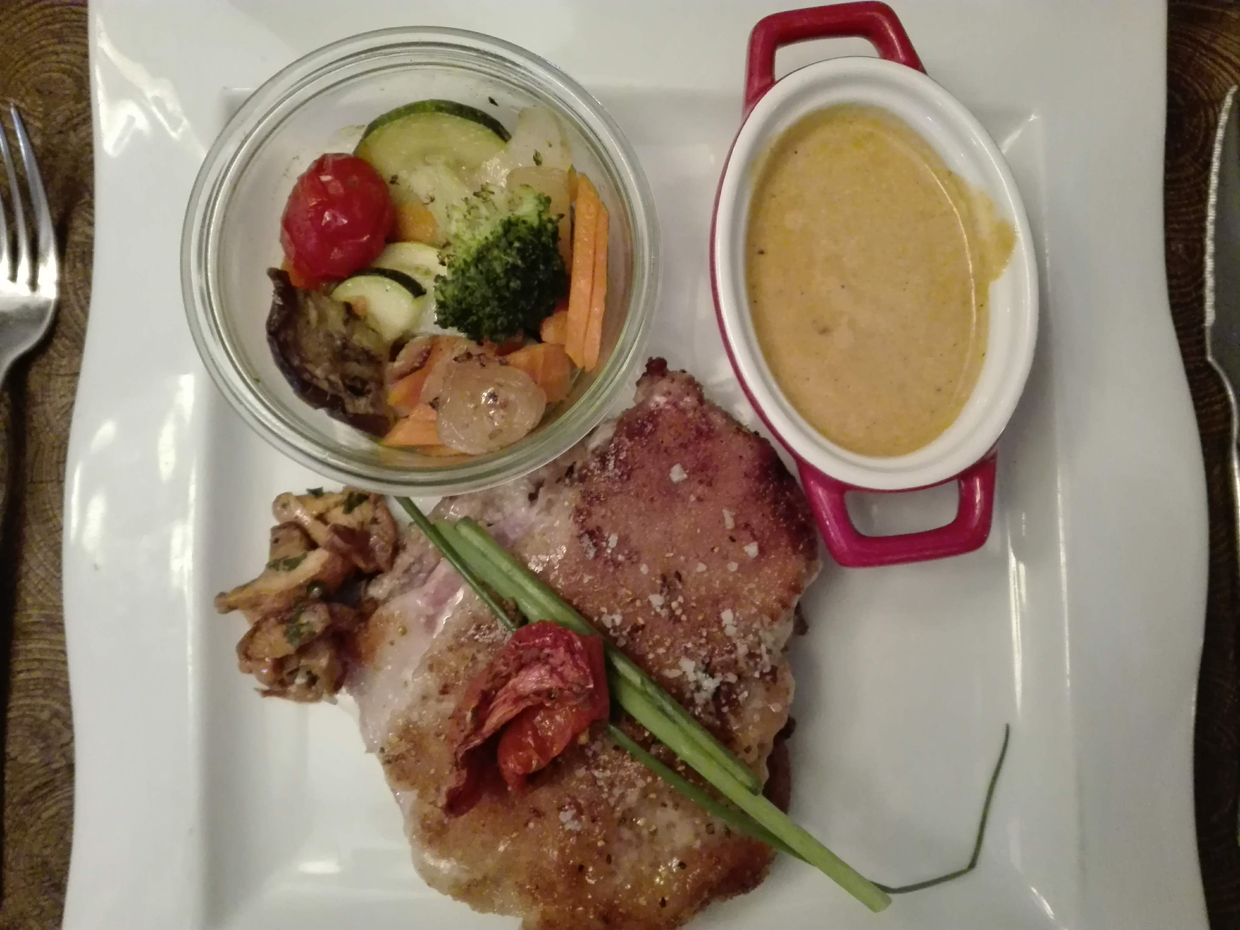 Tarte flambée: bonne Velouté d asperge: excellent Cordon bleu : trop sec , trop epais, manque de sauce À revoir