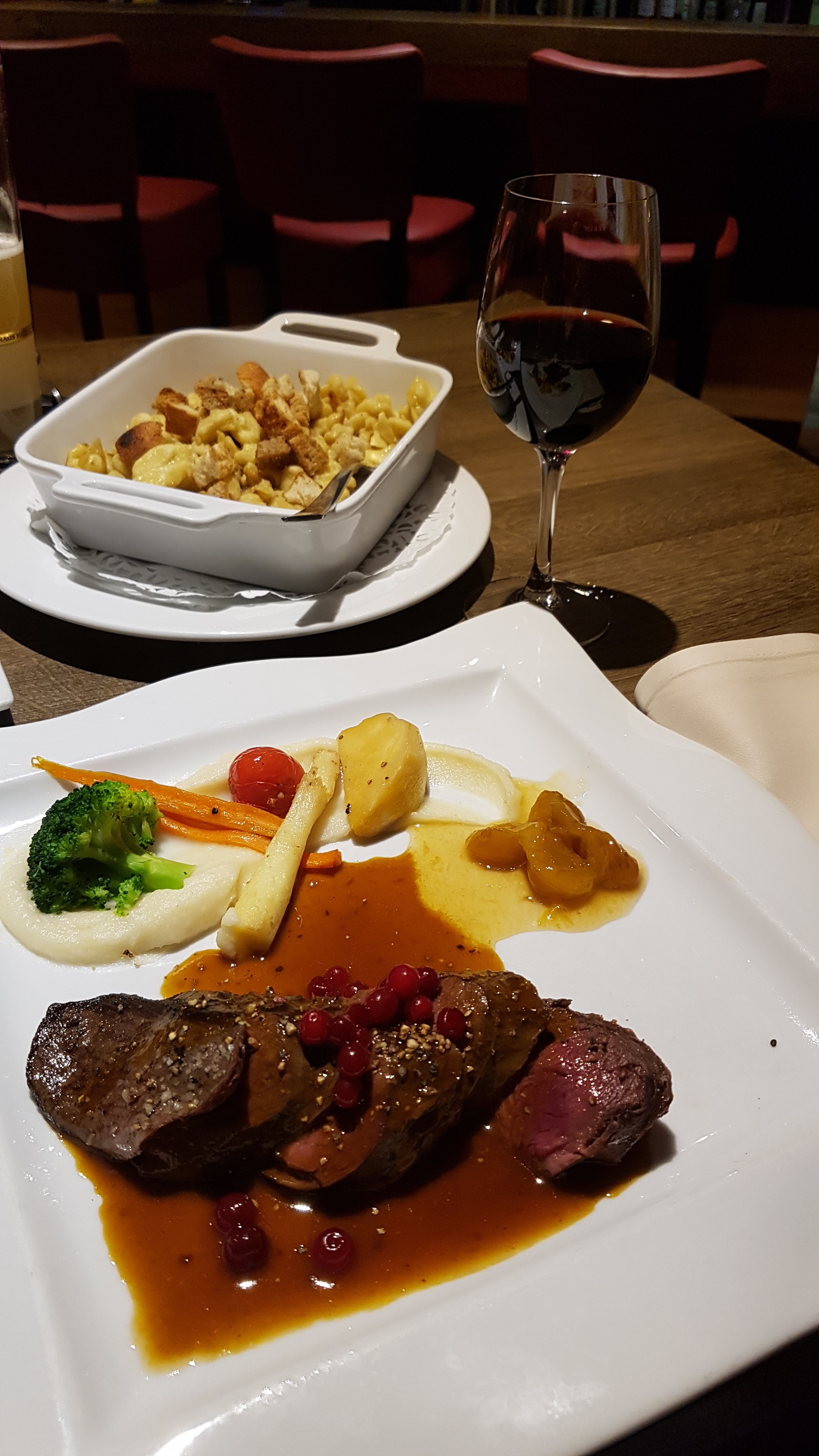 Joli petit hôtel avec des chambres récemment rénovées, bien équipées avec, entre autres, TV avec programmes allemands, réfrigérateur/minibar, coffre-fort. Les salles de bains ont également été récemment rénovées, tout est de haute qualité et propre. Les critiques sont nombreuses, mais il y a en fait quelques points à critiquer : la couette est très lourde, et il n'y en a qu'une dans le lit double. Il n'y a pas d'étagère dans la douche de la salle de bain, et un peu plus de lumière serait bien. Le restaurant attenant a clairement dépassé nos attentes. De la tarte flambée au gibier en passant par le steak, tout était parfait.