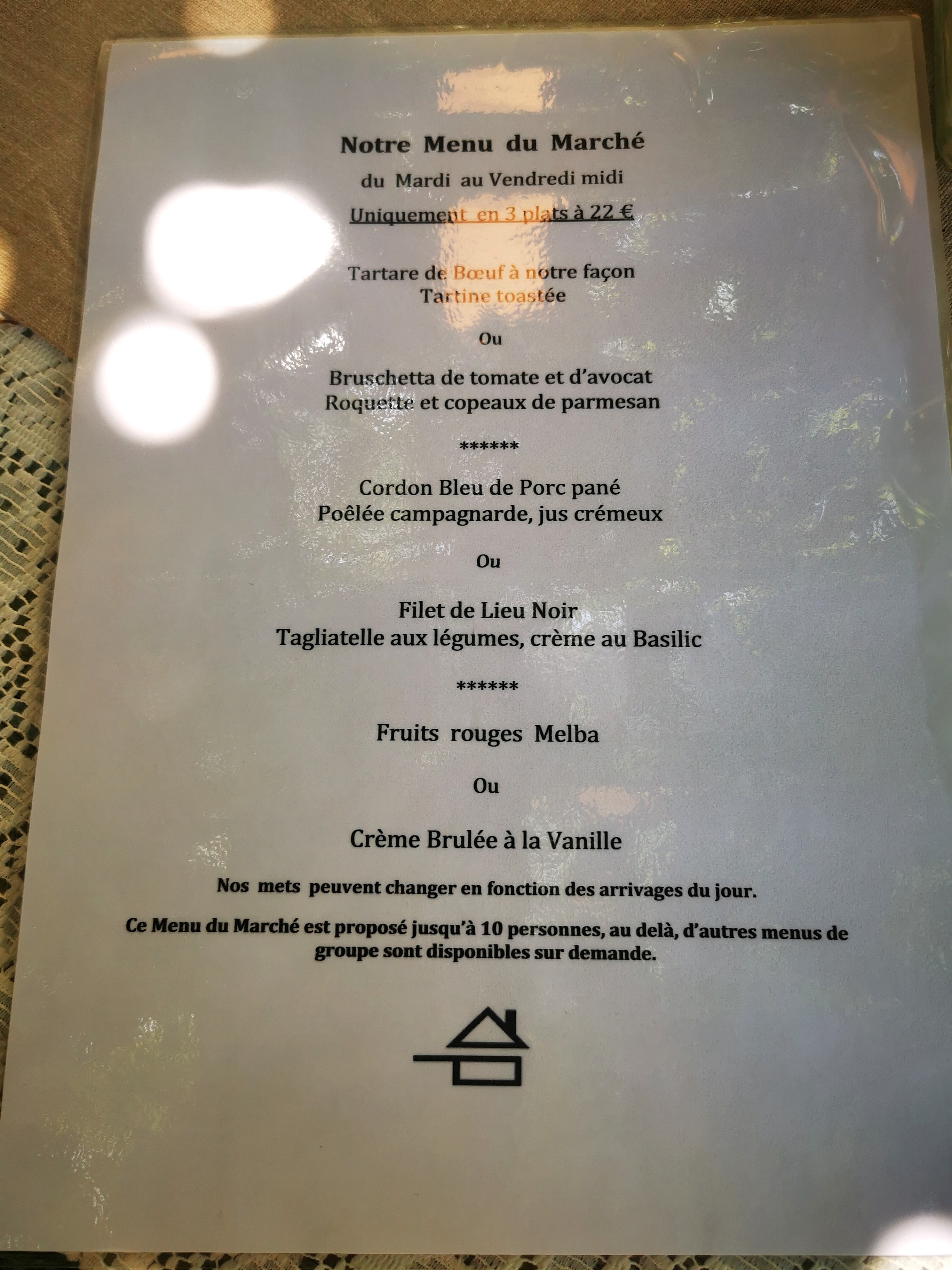 Posté le 13/08/2023 à 20:11"Très bel endroit où on mange bien. Menu du marché très bon rapport qualité prix."