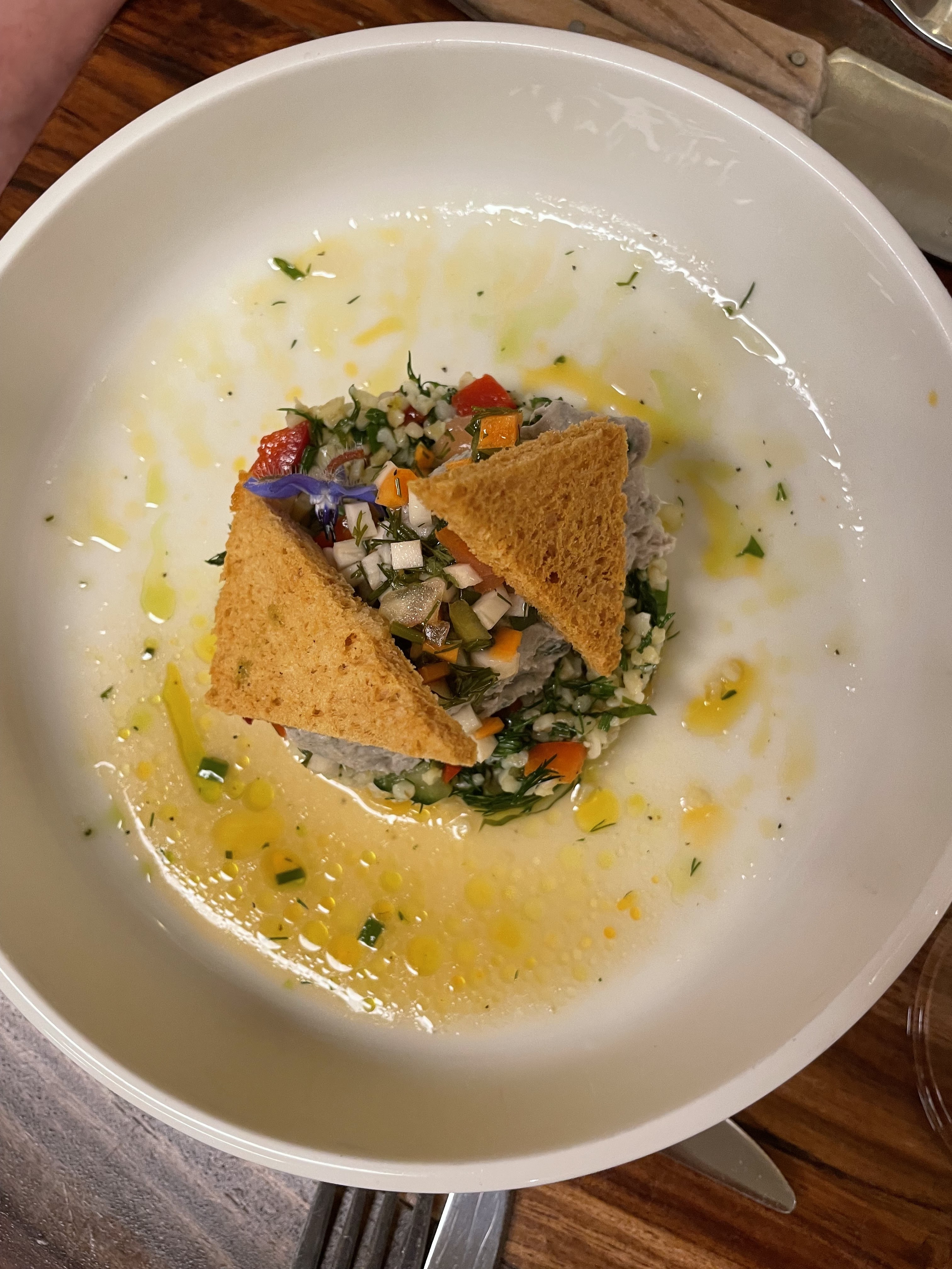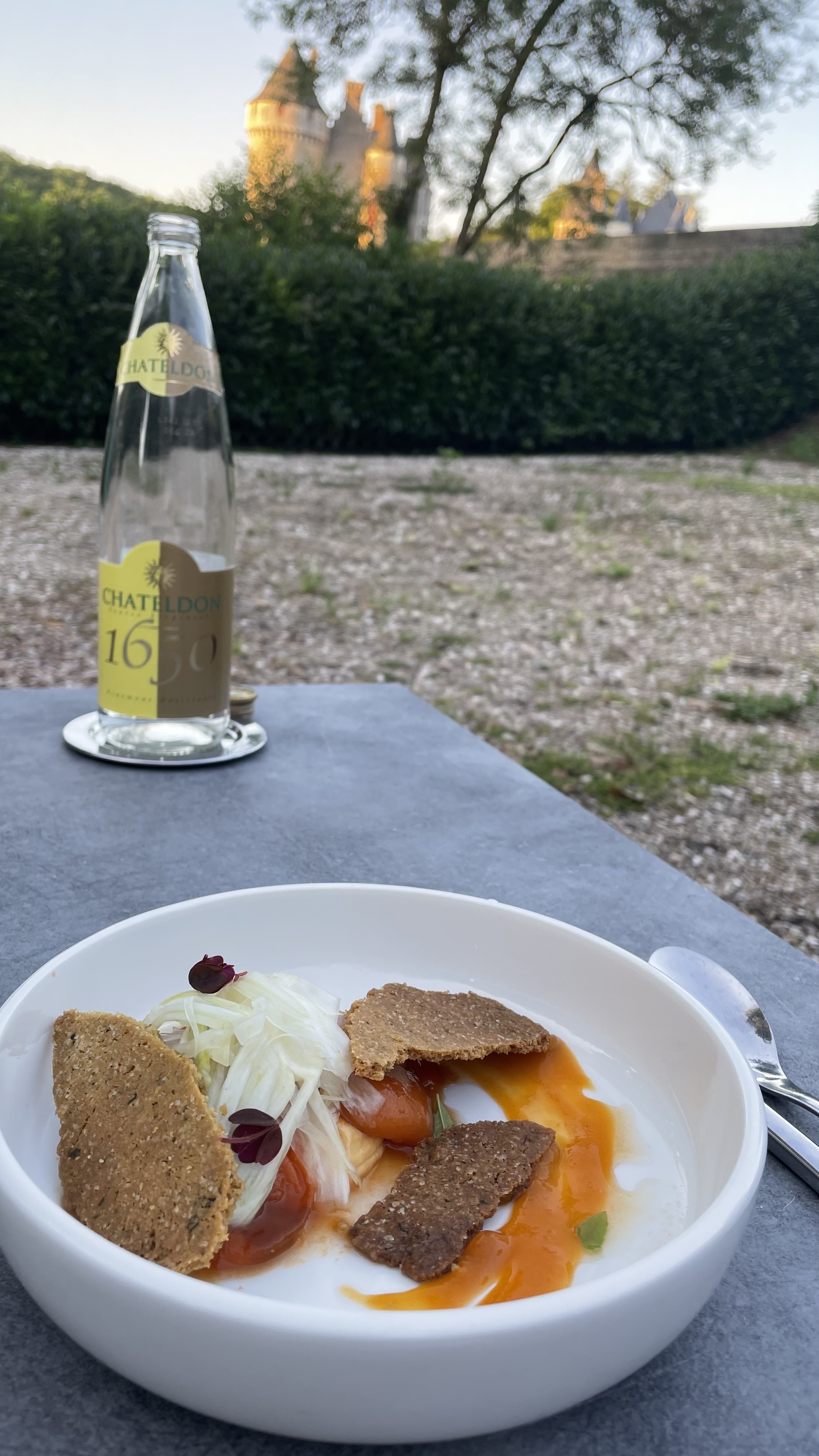 Le repas succulent bémol service en terrasse avec table trop rapprochée les unes des autres bien que l extérieur propose la place nécessaire avec une vue magnifique du château.