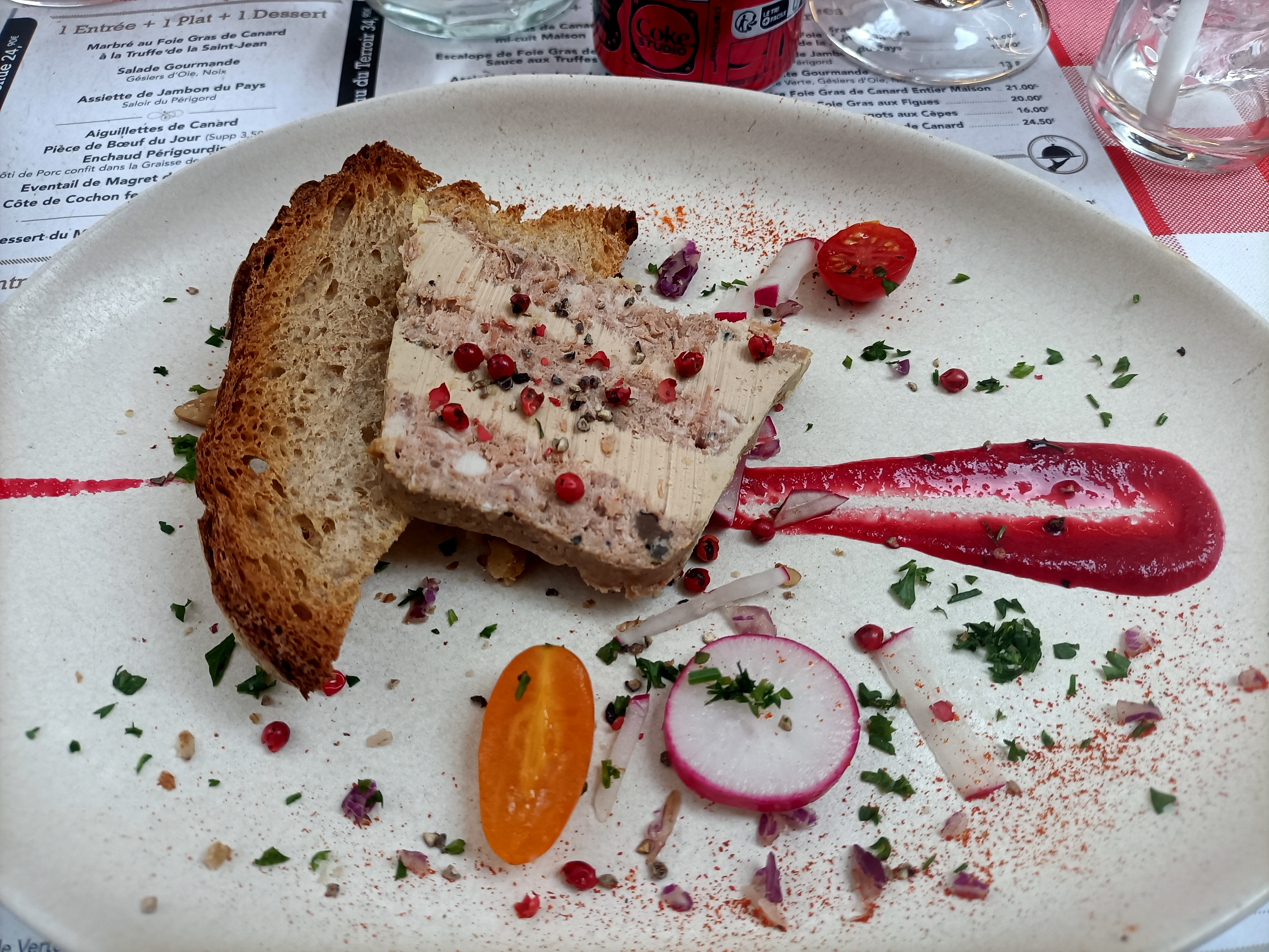 Restaurant situé dans ue petite rue agréable. Une partie dans l'impasse. Nous avons très bien mangé. Plats typiques du Périgord. Le seul bémol le service est trop rapide. Vous commandez à peine l'apéro qu'il est déjà servit. Pas le temps de finir que l'entrée est déjà arrivée et tout le repas comme ça. C'est dommage car il y avait peu de monde