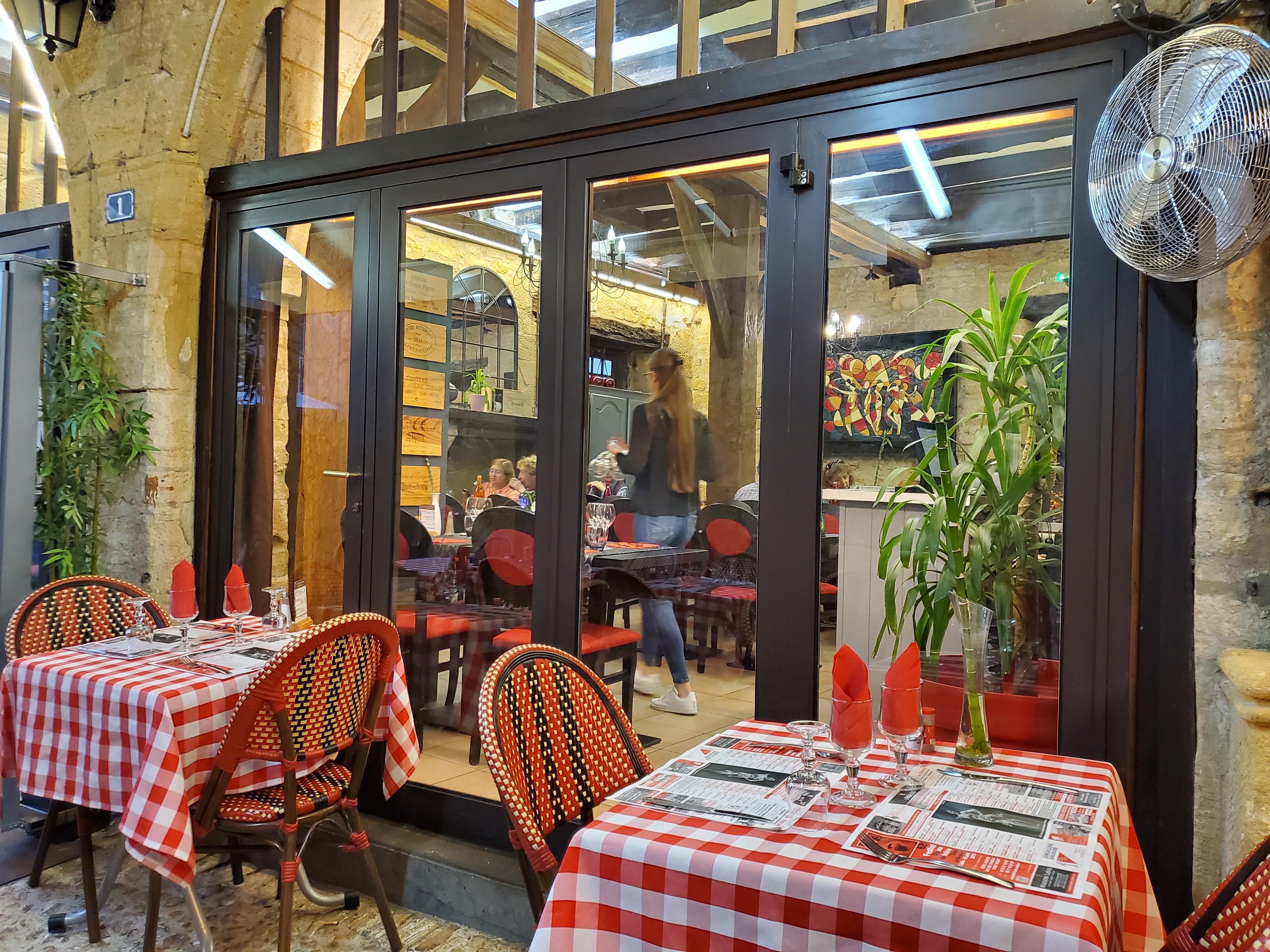 Charmant restaurant dans une ruelle près de la rue centrale de Sarlat.