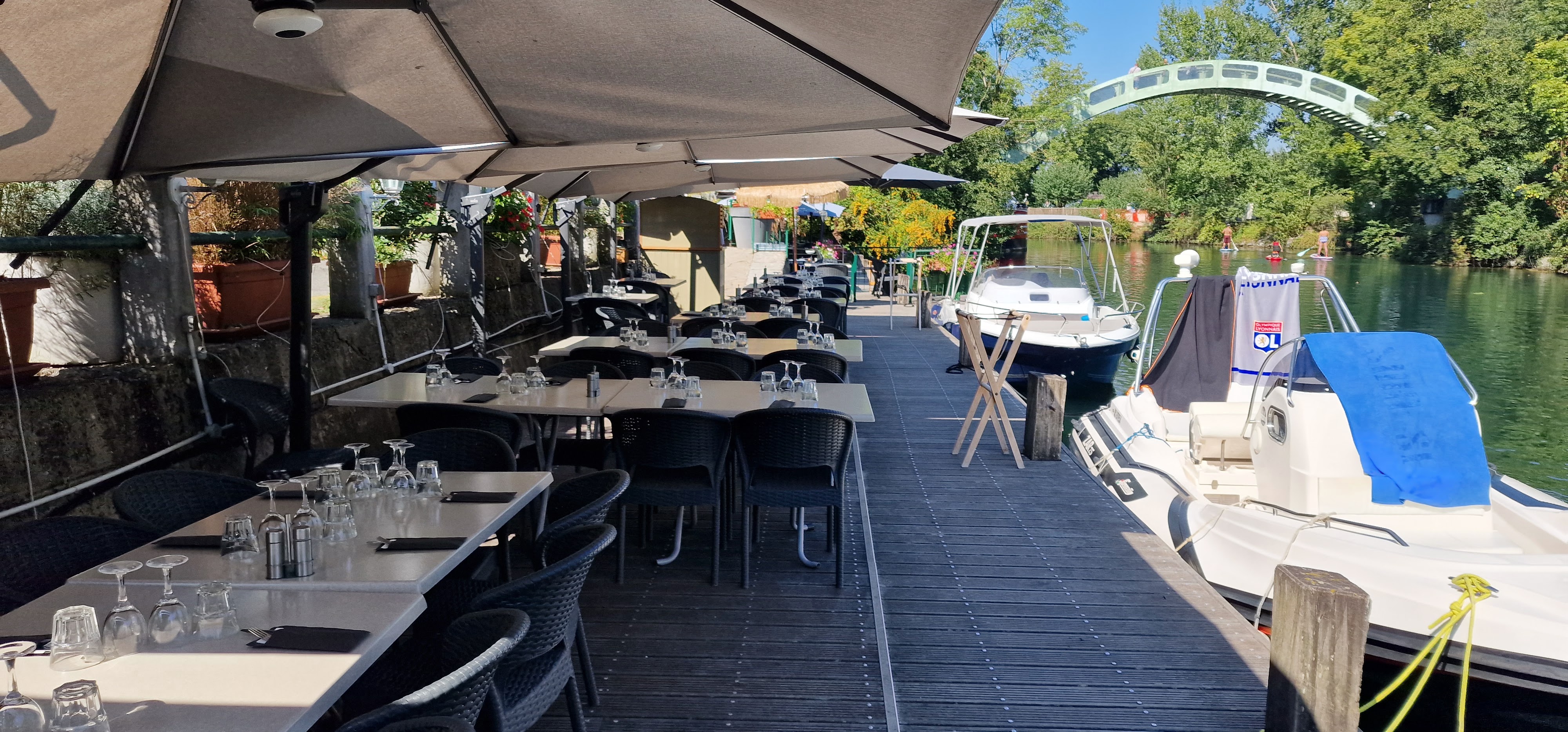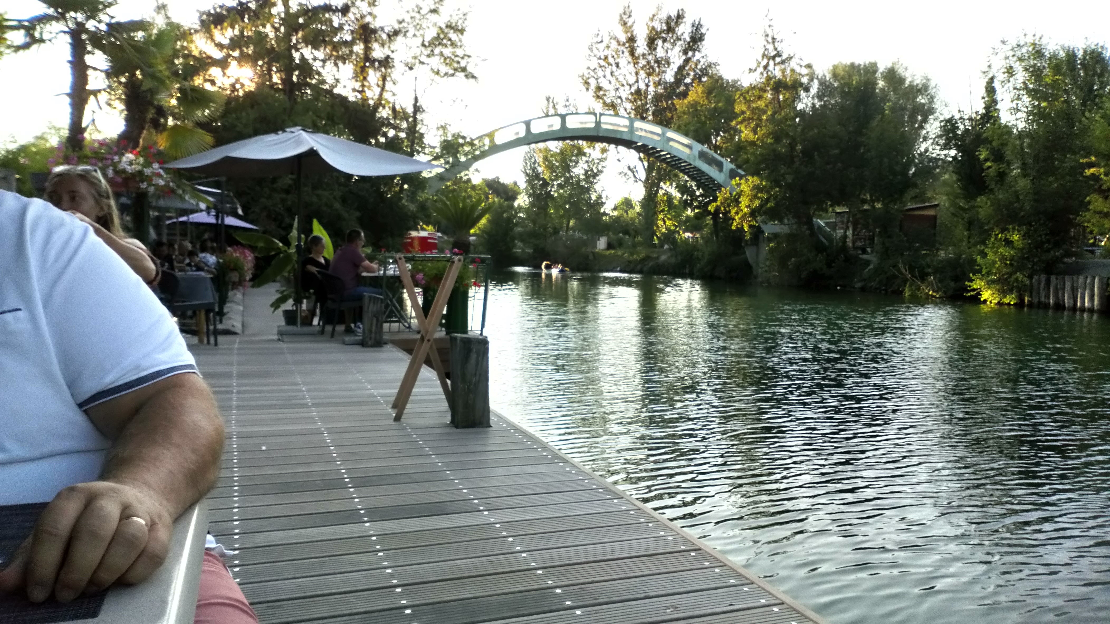 Jolie petite terrasse bordant le canal - repas plus que correct - ambiance sympa - avec un beau soleil et la vie est belle..- ponton et table à réserver