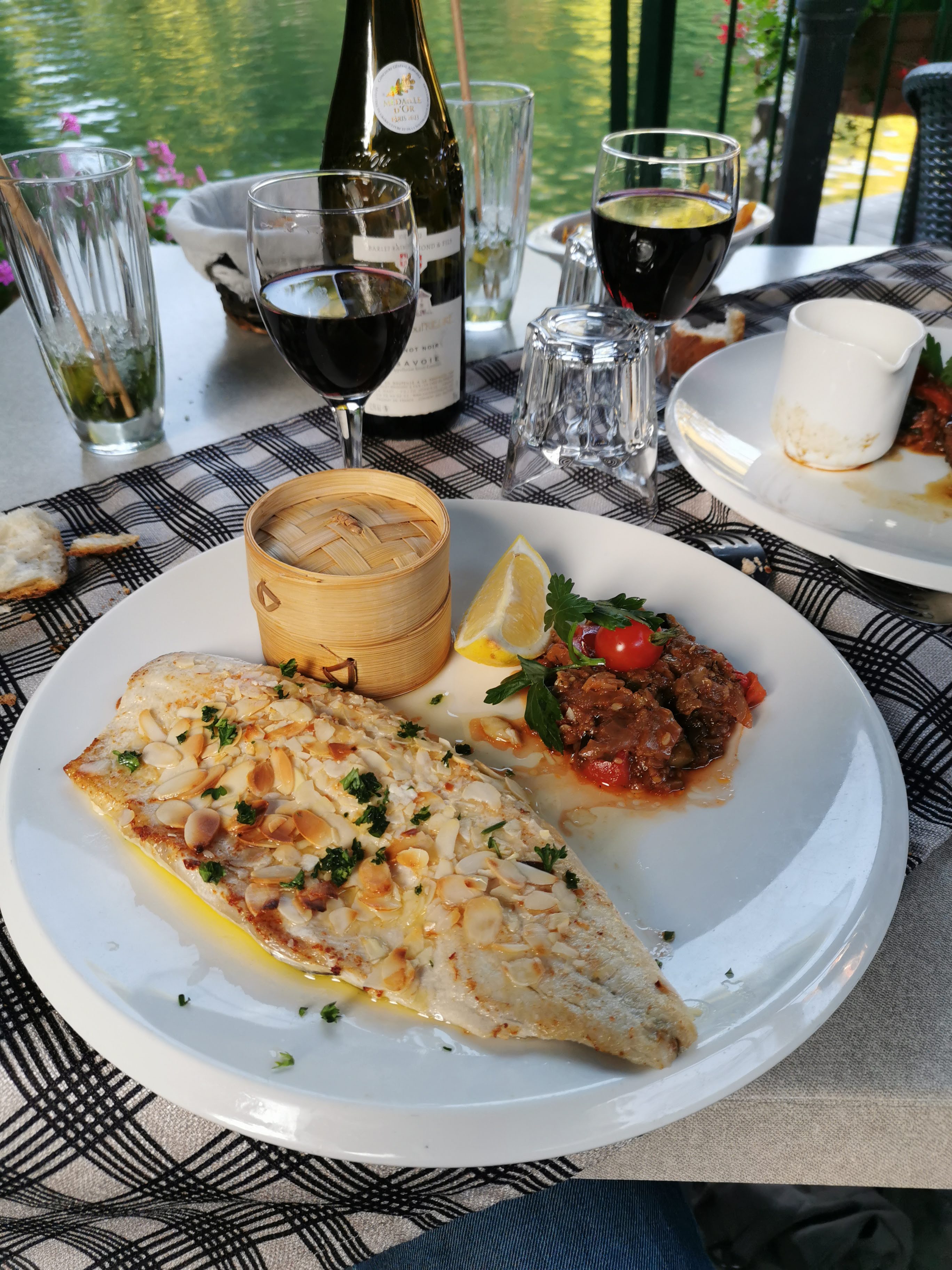 Cadre agréable au bord du canal de saviėre,le repas était très bon et fin. Tout petit bémol la longueur du service et une erreur de plat .