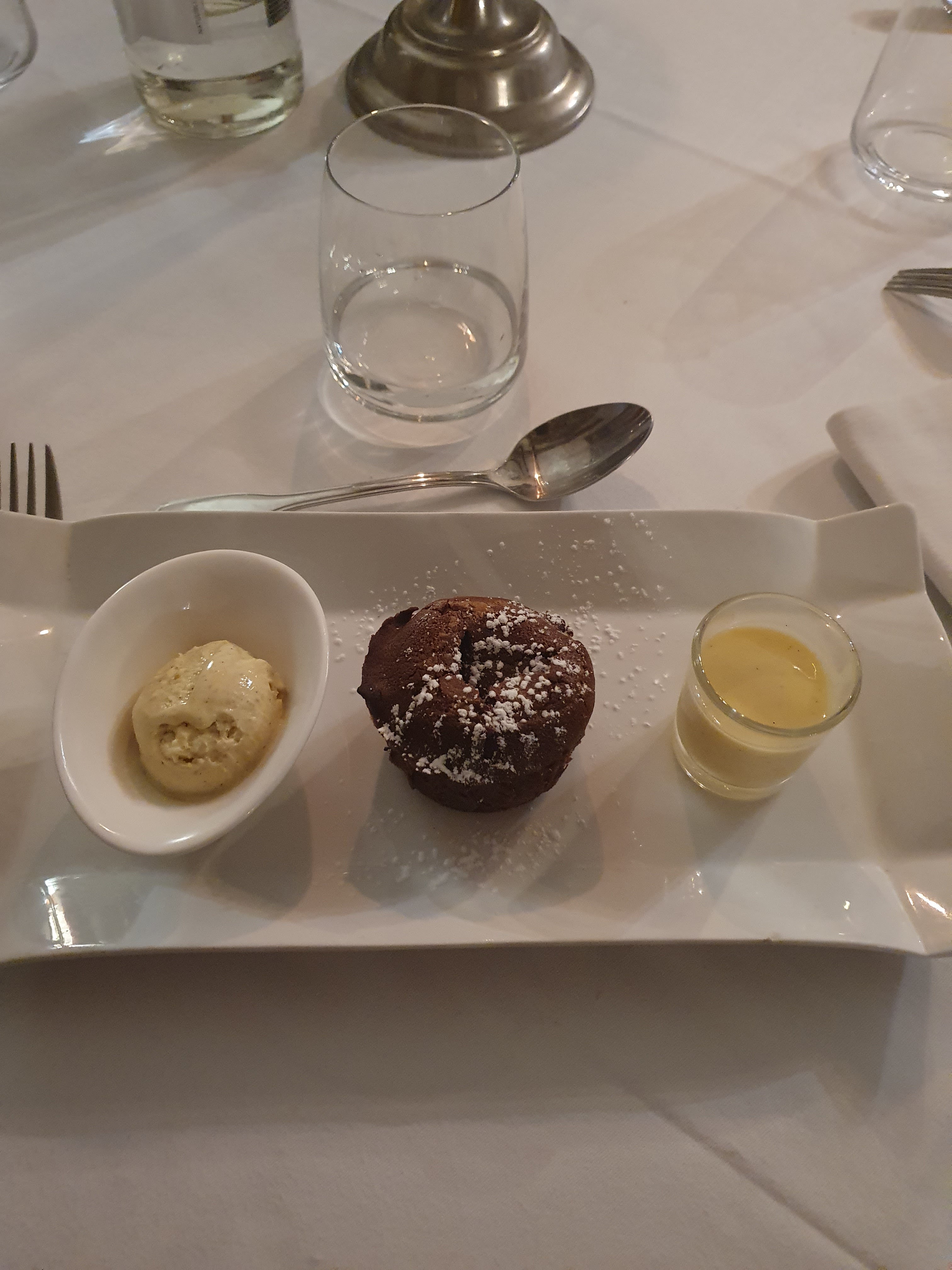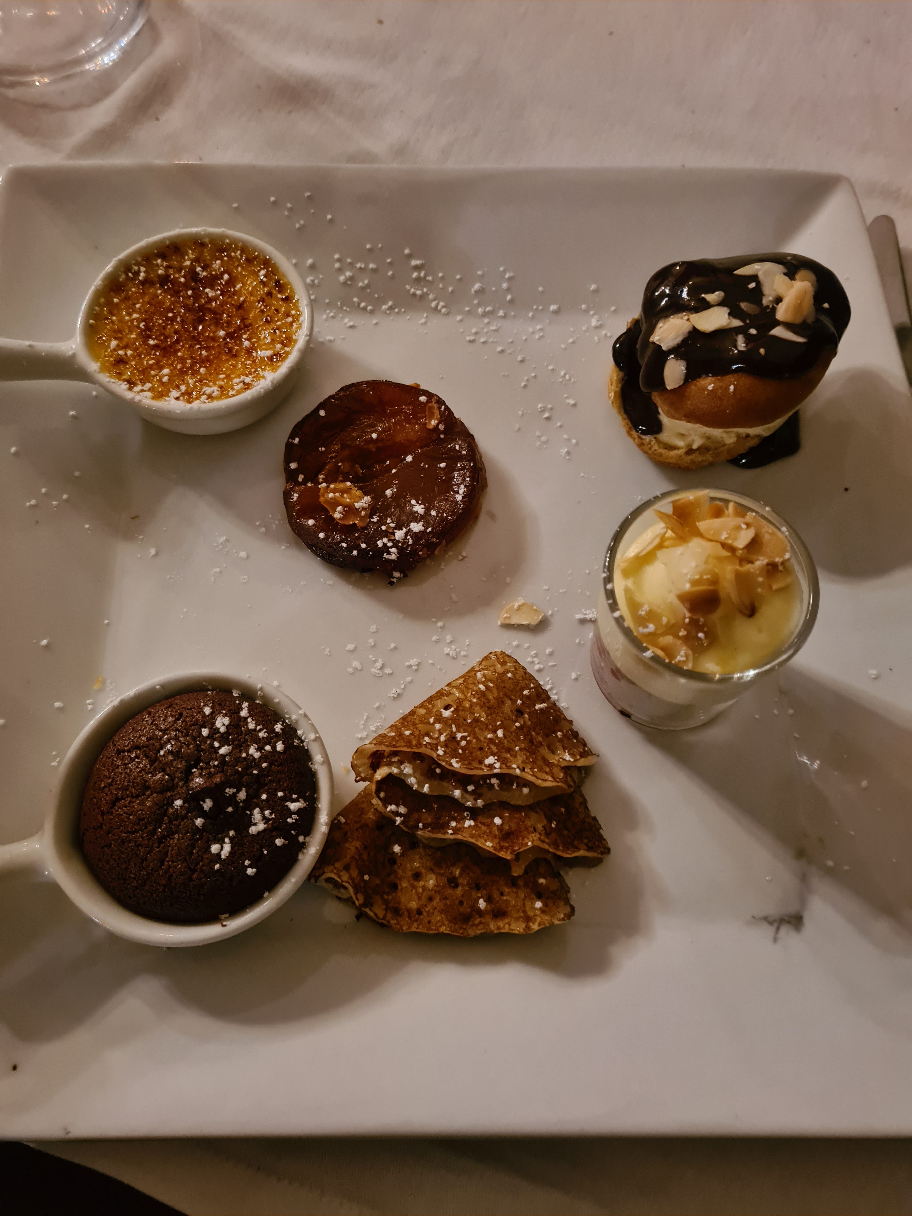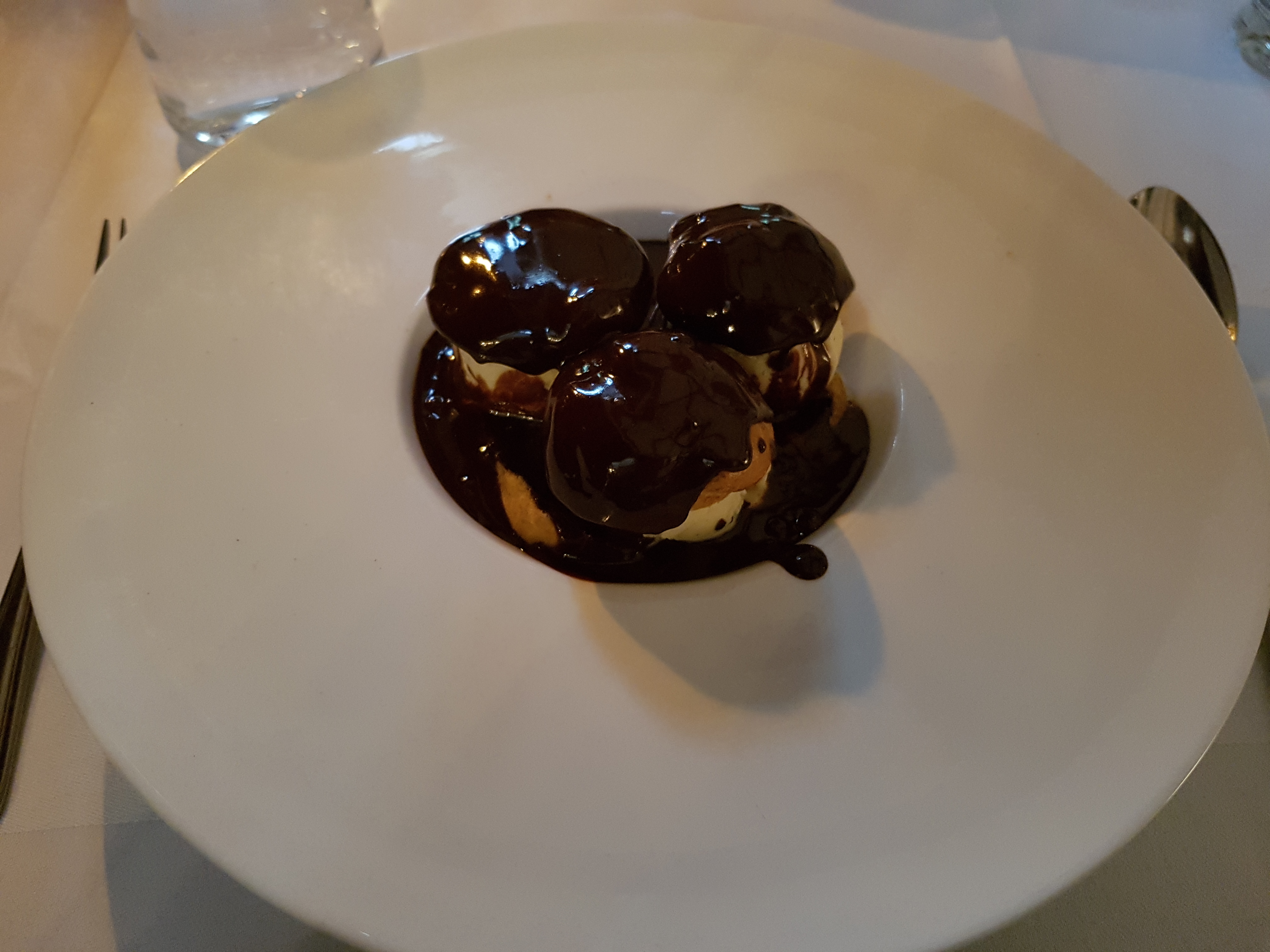 Repas correct quoique la sauce chocolat sur les profiteroles était froide... Le service un peu léger dans le sens où le serveur pose les couverts sans vraiment de protocole (ex : couverts du même côté d'une assiette et inversion des couverts pour une autre assiette)...sans doute la chaleur... Sinon l'environnement est sympa.