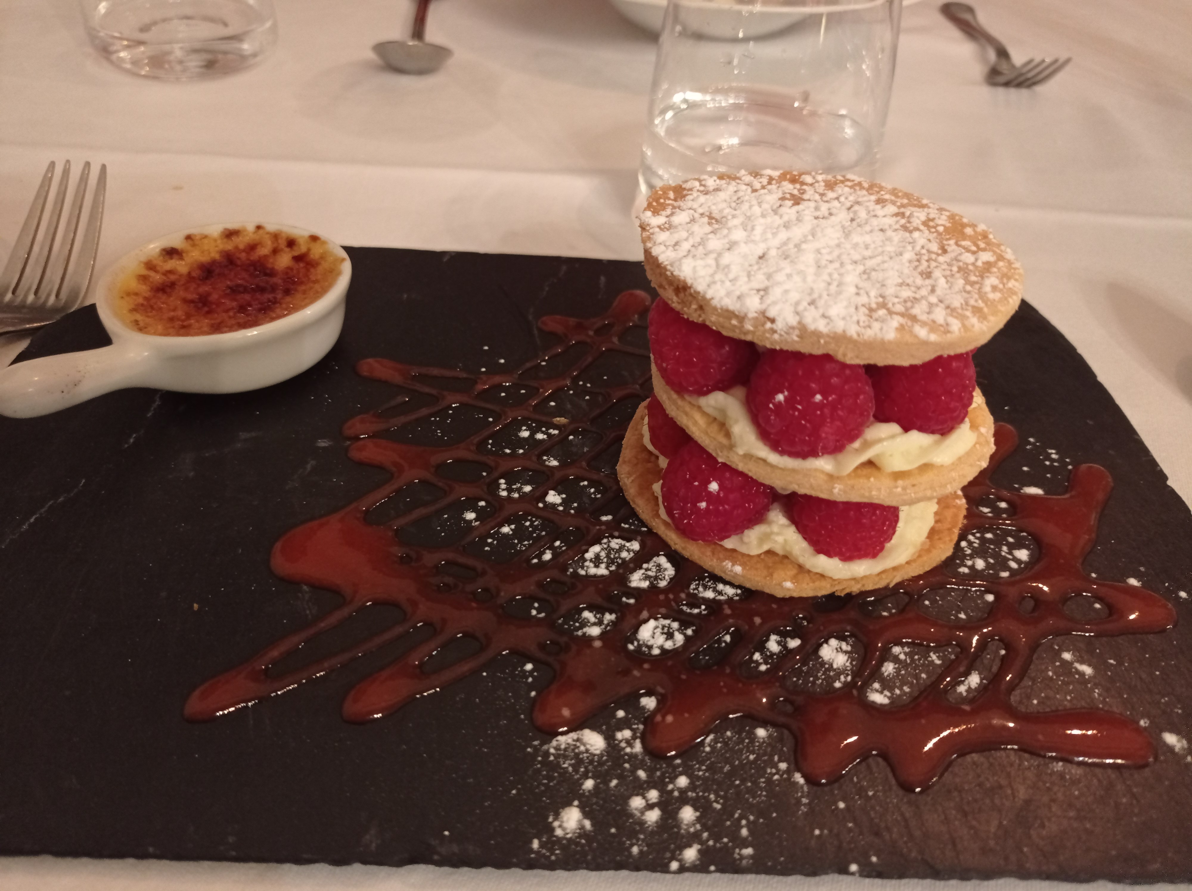 Nous n y étions pas retourné depuis 2 ans et qq peu décevant cette fois encore... L entrée OK foie gras, escargot, gambas, tartares 3 façons... On notera des entrées sûrement preparees à l avance le vinaigre balsamique sur l assiette foie gras est figée dc caoutchouteux C dommage Les plats grosse déception sur le Turbot sauce champagne : annoncé avec purée et petits légumes .. Au final des pommes grenailles et une ratatouille avec goût fort prononcé de poivron qui emporte tout le plat et la sauce champagne à disparu ds la ratatouille, tout à un goût de poivron et le poisson est légèrement trop cuit, quel dommage surtout que nous n aimons pas les poivrons Nous en faisons part au patron qui nous propose de la purée lol Une amélioration du plateau de fromage pourrait être envisageable quand on a un choix très appréciable dans des restaurants avoisinant comme le gourmandin, la vieille auberge... dessert :millefeuille framboise crème brûlée > mille-feuille très bon mais on aimerait sentir plus la vanille ds la crème pâtissière et crème brûlée bonne mais un peu épaisse C une petite bouchée heureusement sinon elle mériterait plus de légèreté Addition, le patron arrive avec la machine cb et aucun geste commercial C dire ... Surtout qu un petit digestif ou offrir les cafés ne lui aurait pas fait de mal À la place il nous dit avec les nouveaux logiciels on est coincés on doit mettre de notre poche si erreur d addition mais je ne suis pas à 7, 5 eur prêt je ne v pas en mourrir (il avait compté une eau en trop) ...raison de plus pour offrir les 2 cafés ou faire un geste mais non. Et la porche est garée devant lol yen a qui sont à plaindre ...