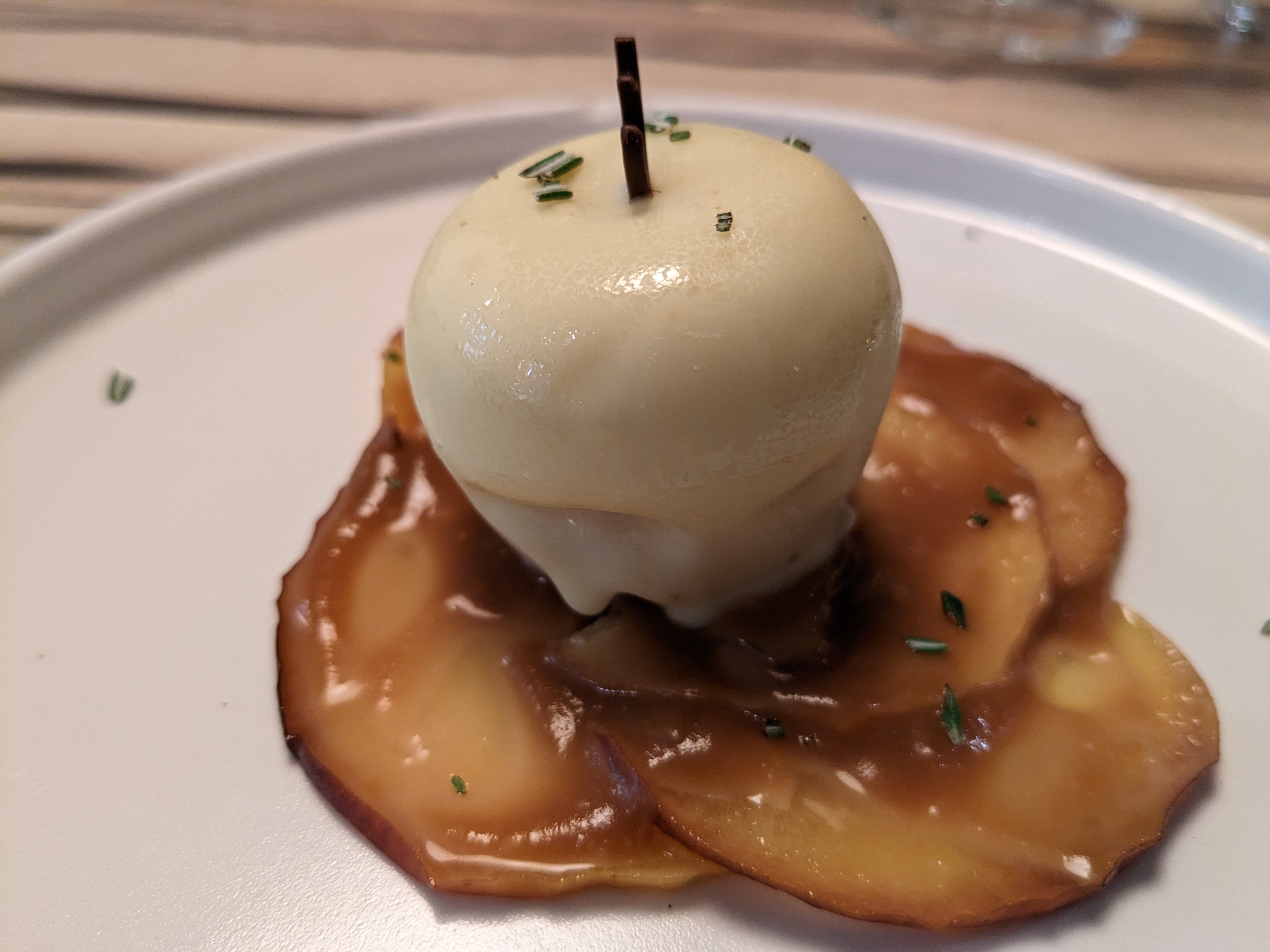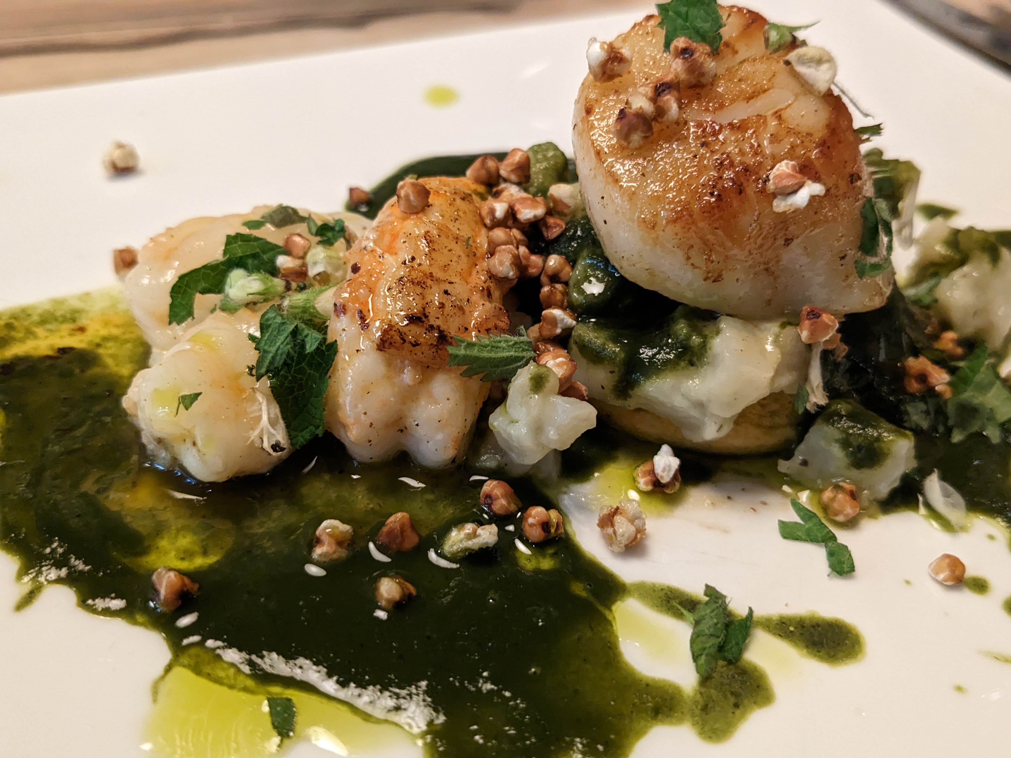 Une cuisine incroyable qui tient de la magie, voire de la sorcellerie. L’inventivité le partage à la maîtrise de l’exécution, on a l’impression que le cuisinier est amoureux de ses plats. Assurément, si le chef Piege et le chef Gagnaire goûtaient cette cuisine, ils seraient séduits Le service est dans le ton, généreux et élégant.