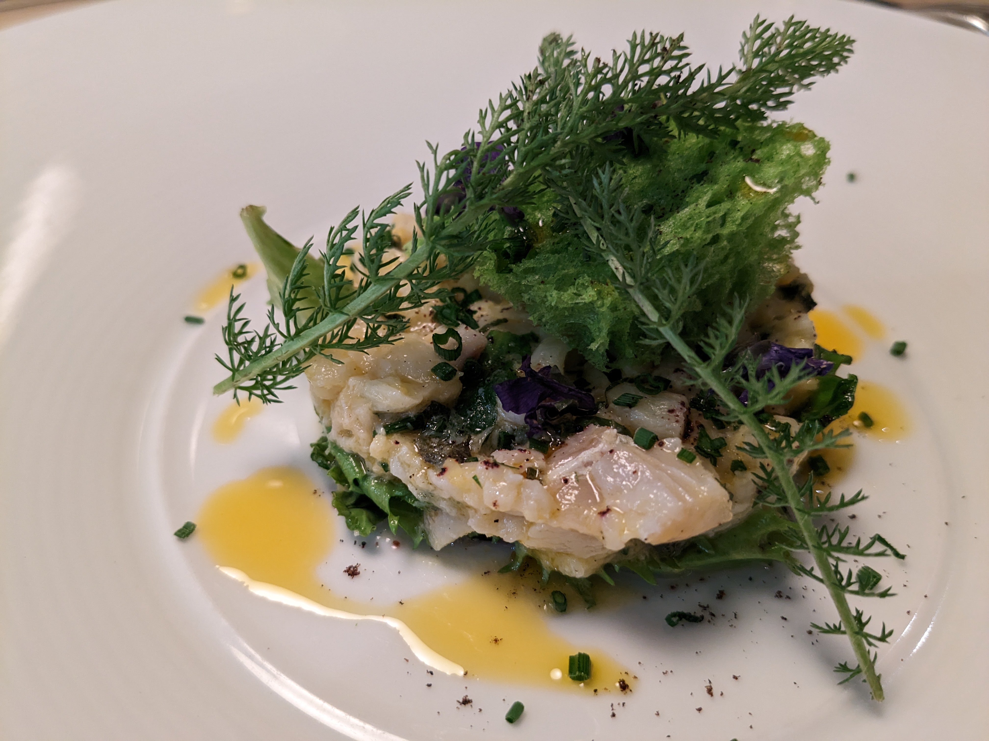 Une vraie expérience gustative. Un mélange étonnant et très réussi de feuilles, fleures et condiments. Le service est top le cadre agréable.