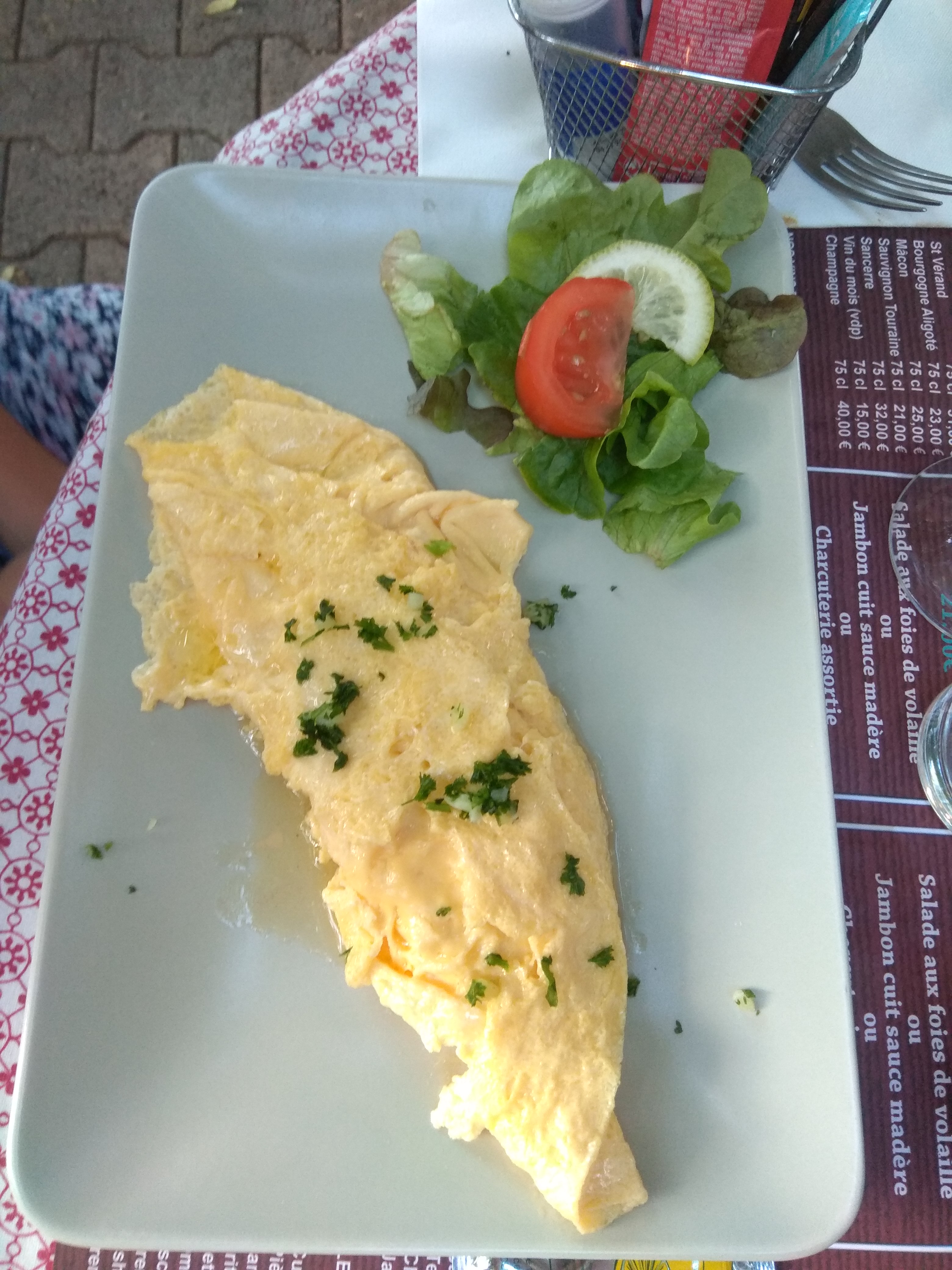 Ah oui...une sorte de guinguette en cet automne si chaud. Les sourires des servants. Peu de choix mais bon, on n'est pas chez Troisgros.... Y compris pour les prix sympas. Un petit resto de France comme je les aime...