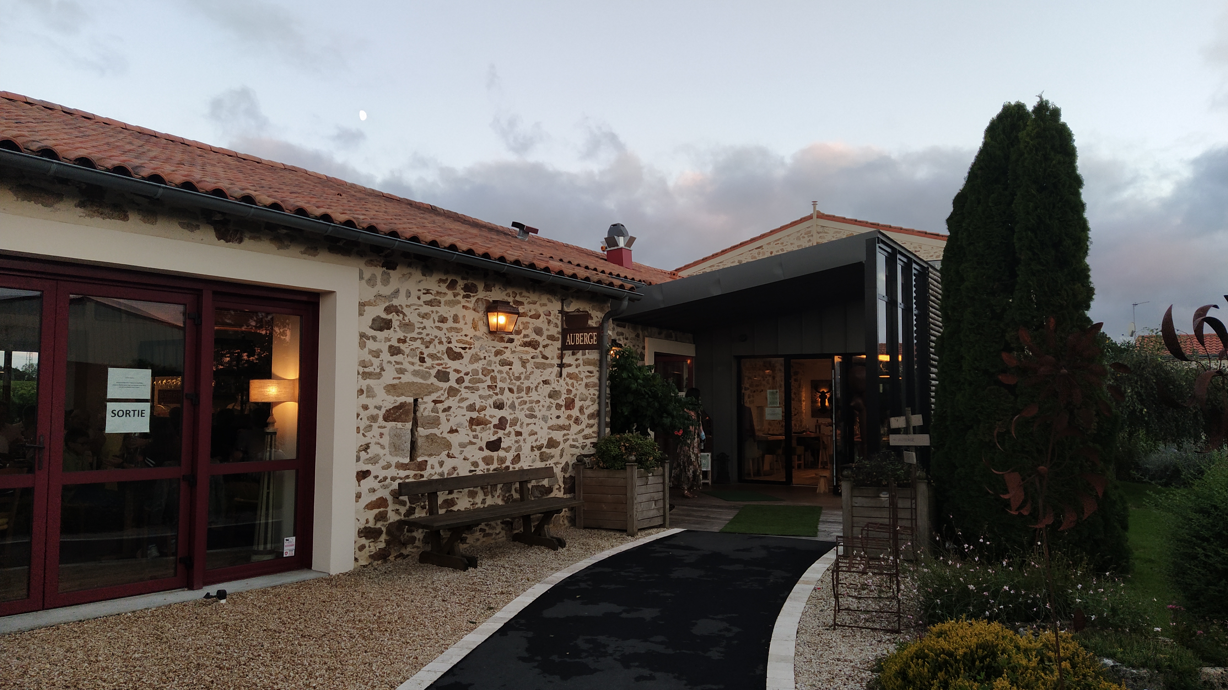 Super soirée, dans cette auberge ! Cadre très sympa, le menu s'est révélé être un festival de saveurs : - entrée 5 surprises : sans tout dévoiler, la soupe champignons potimarrons, par exemple, se présentait en 2 couches pour isoler les parfums : super idée, saveur et texture - plat : nous avons choisi la joue de porc au pruneaux et nous attendions à un plat assez basique =composé, en accompagnement, d'une forte dominante de pruneaux. A notre grande surprise, le pruneau était là pour apporter la légère petite note sucrée à ce plat riche en diversité. Un festival de goûts tout en nuance. Les ingrédients sont au maximum locaux, le pain fait maison, et il nous a été offert une tranche de cake maison en guise d'amuse-bouche : je n'en avais jamais mangé de meilleur du point de vue goût et texture. Nous avons été bien conseillé pour choisir un vin dans la liste des 3 pages de muscadets et vins communaux. Une belle opportunité pour faire des découvertes locales. Pour ne rien gâcher, le personnel est d'une grande gentillesse. Si je devais suggérer un point d amélioration : les tables et chaises font un peu cantine. Y donner une touche de modernité, à l'image de la verrière sur cuisine. Merci pour cette très belle soirée, pour un très bon rapport qualité-prix. La salle était comble : pour un mardi soir en plein vignoble nantais, c'est un signe. Il est donc prudent de réserver.
