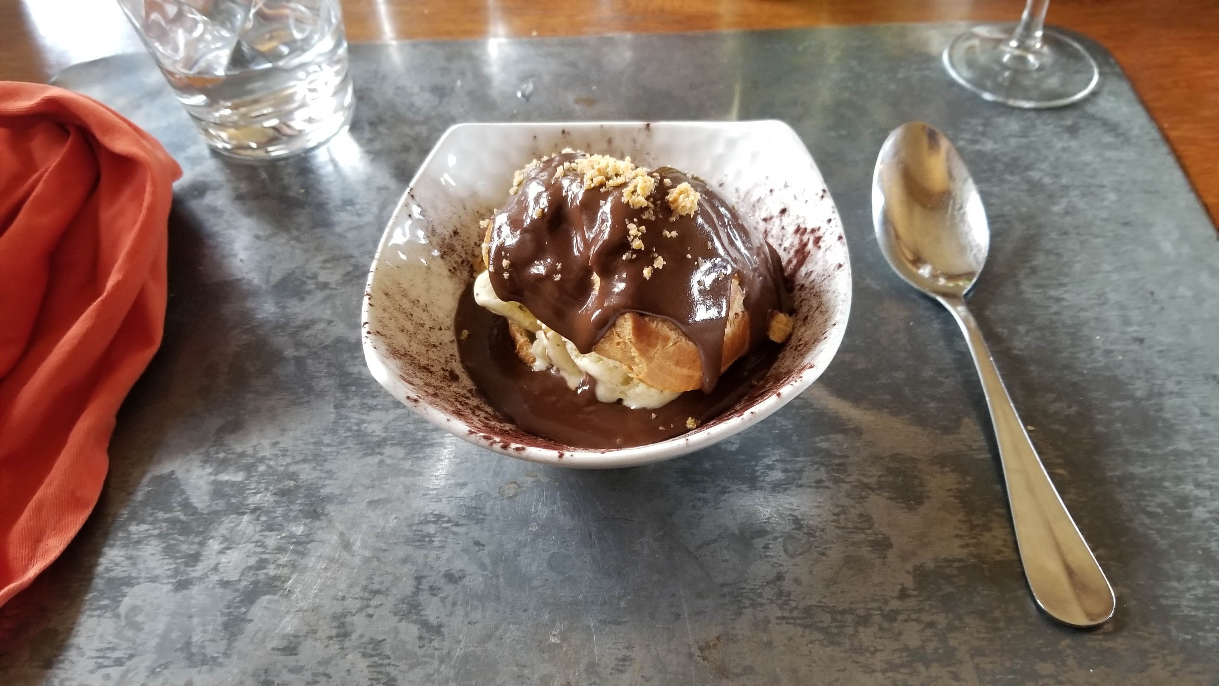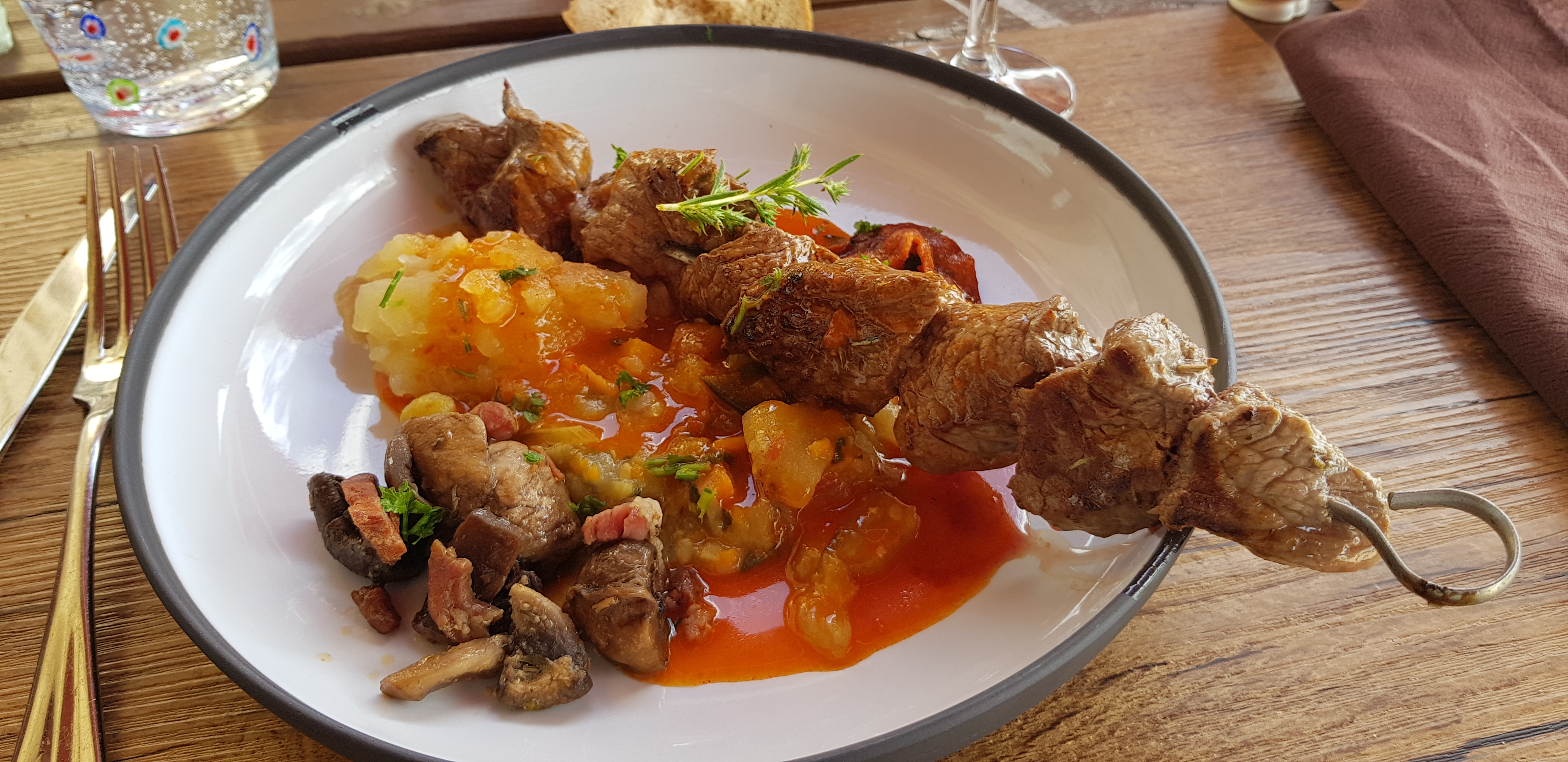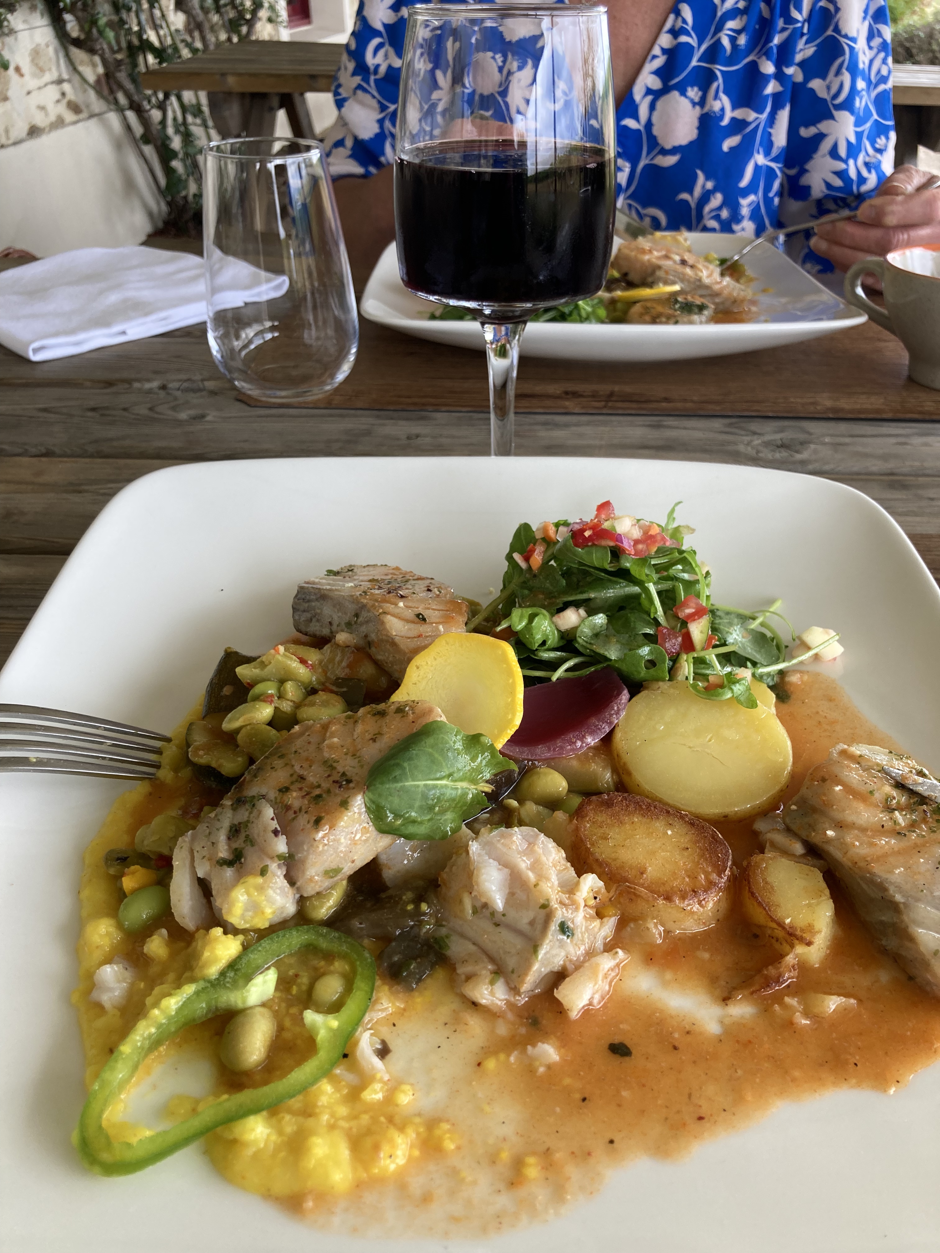 Nous avons mangé en terrasse vue sur les vignes, au top ! Il n y a pas beaucoup de choix mais ce ne sont que des produits frais et essentiellement du coin. Complique pour des ados de faire leur choix, c'est une cuisine qui ouvre à la découverte de nouvelles saveurs , je recommande