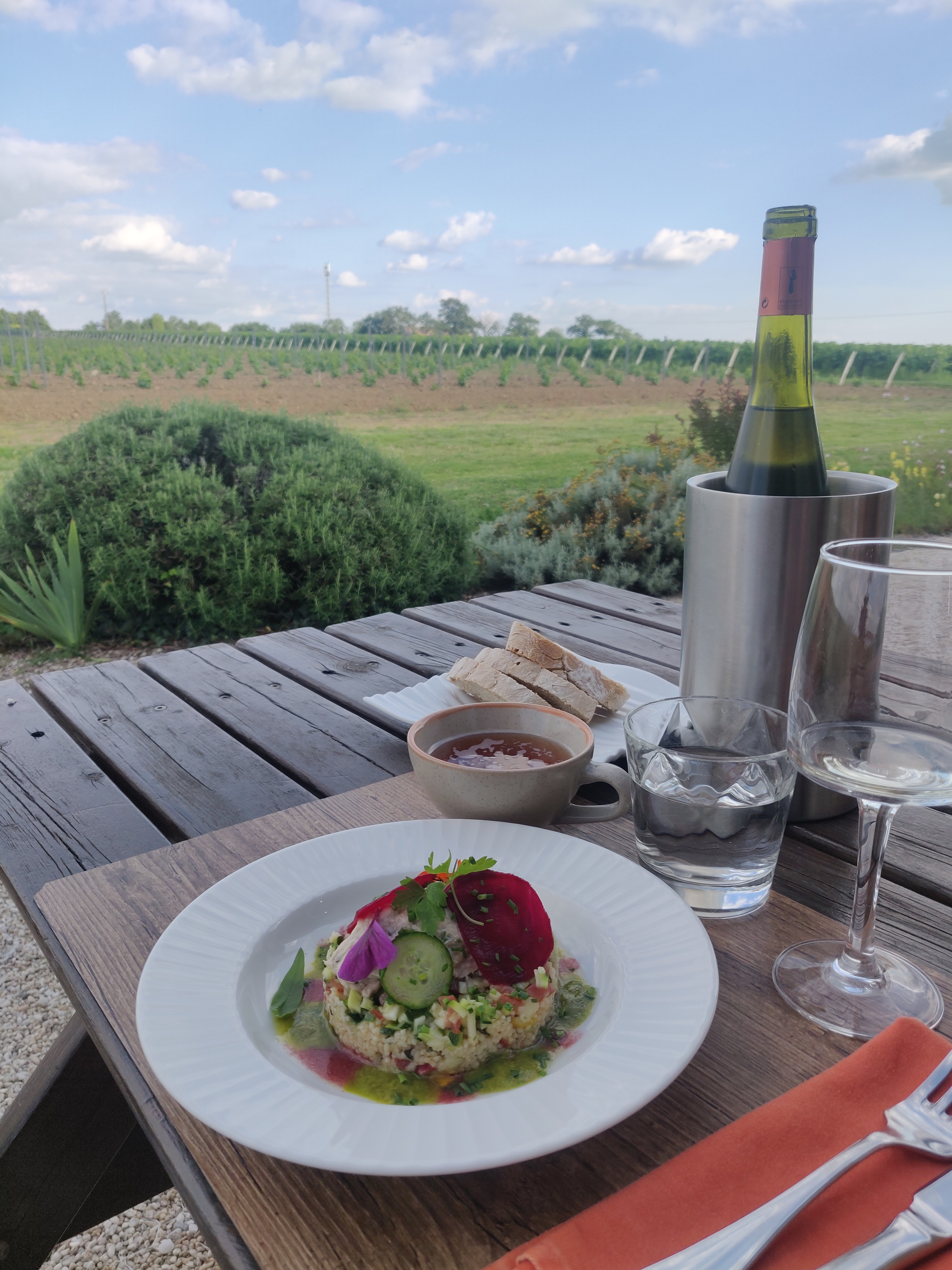 Un lieu très agréable au milieu des vignes, cuisine généreuse et très bonne, Le personnel est au petit soin
