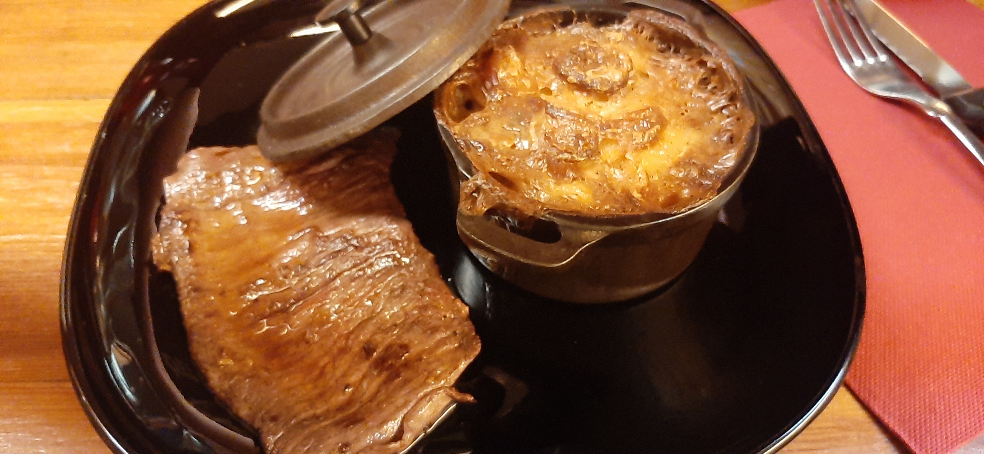 Simple, bon et copieux. Accueil sympathique.Bonne viande, vraies frites maison , la sauce aux cèpes et les myrtilles locales sont au top.
