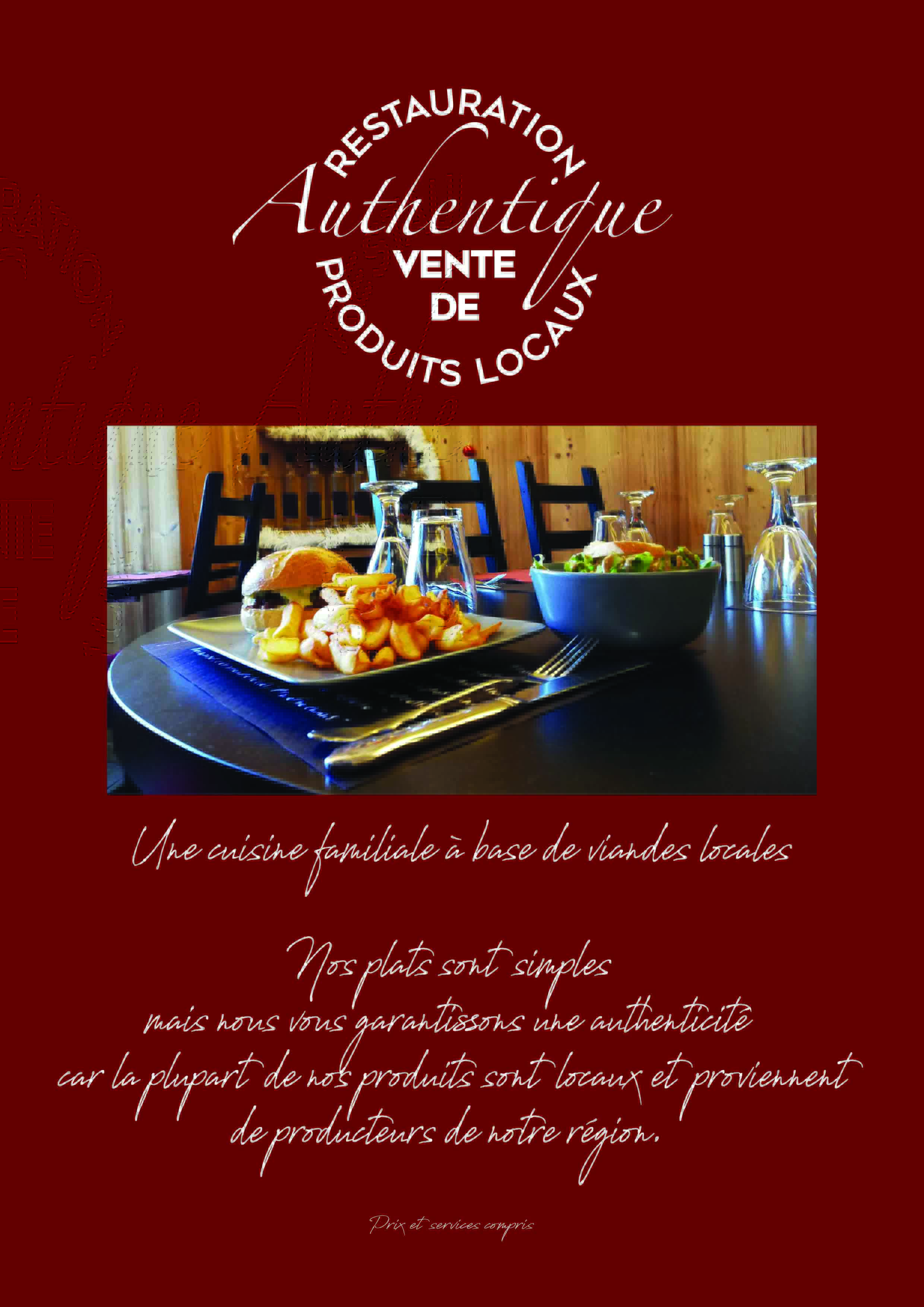 Lieu très agréable. Très propre. Service rapide, et personnel sympathique. Burgers et viandes avec produits locaux de qualité. Sauce aux champignons champi (cueillis par le propriétaire en saison) excellente. Ne pas hésiter à s'arrêter dans ce restaurant l'authentique, qui porte bien son nom.