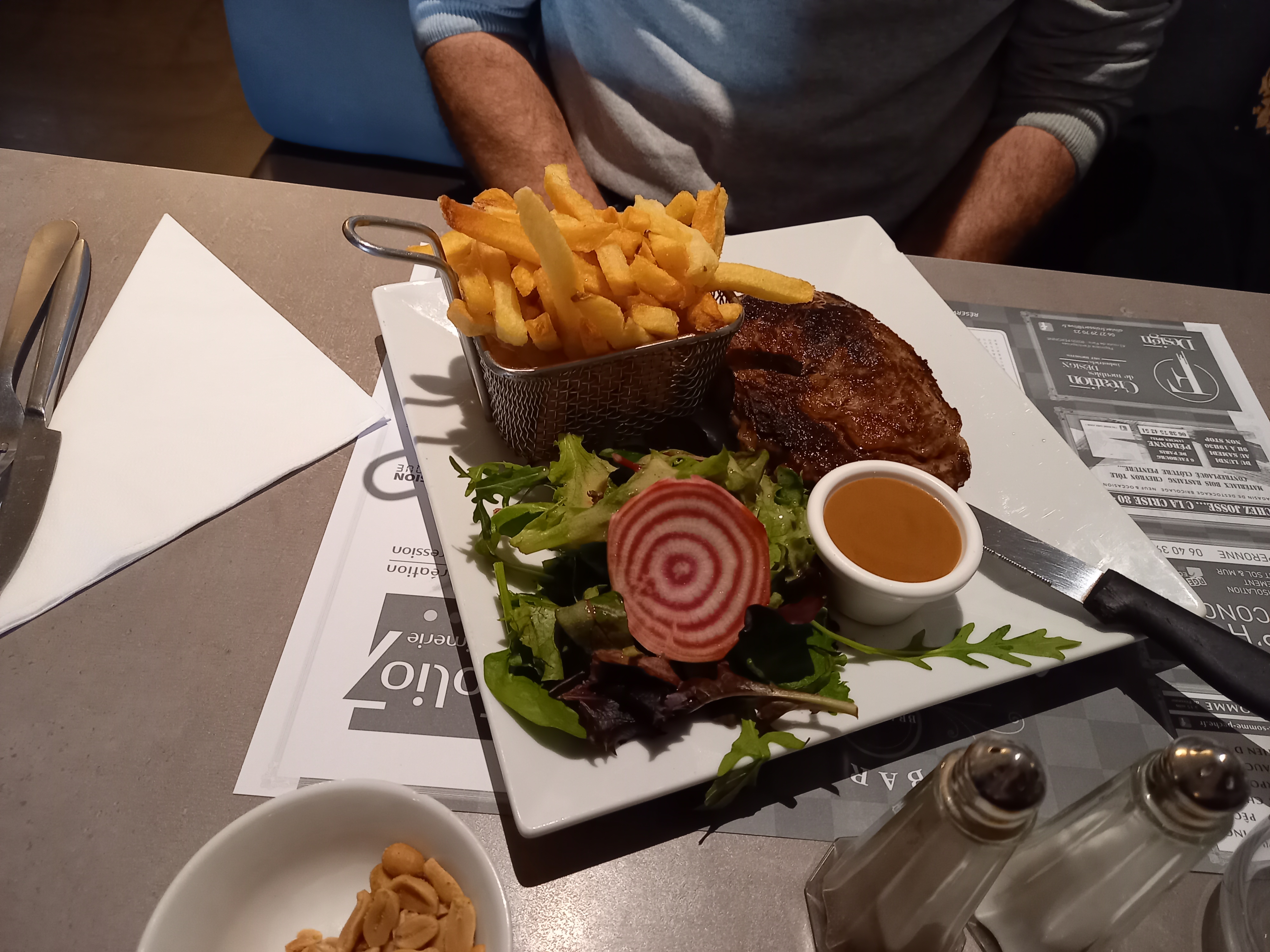 Assez mitigé 🫤 le risotto n'en n'est pas un mais le plat est bon. Et il faut faire quelques choses pour les frites elles doivent être bien meilleurs que ça. Andouillette très bonne et le chorizo du risotto également. Le Personnels est très agréable et serviable. Ça reste une bonne table et les prix sont correct.
