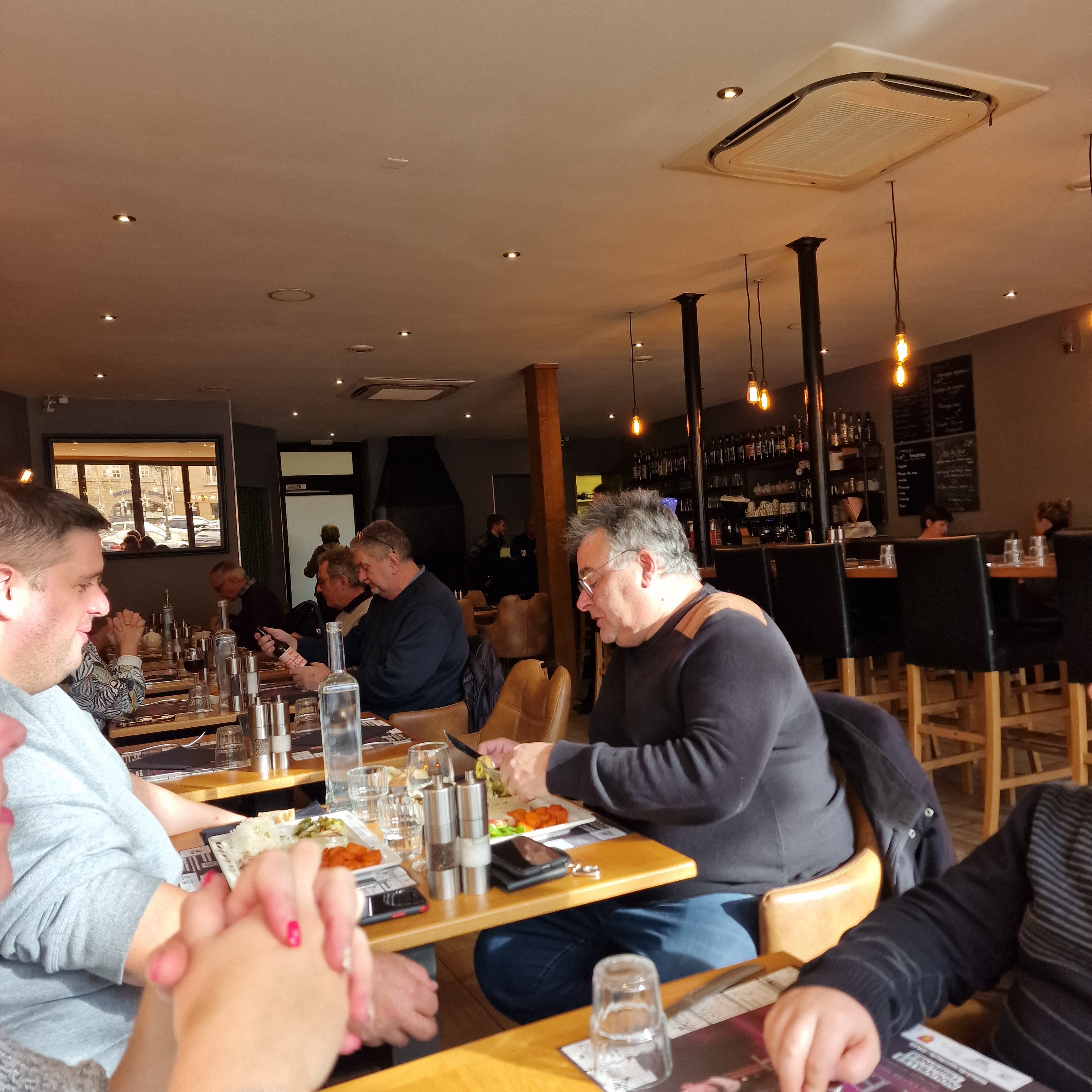 Une carte un peu chère. Un service moyen (l'entrecôte servie avec des légumes alors que la serveuse ne nous a pas précisé qu'il y avait le choix avec des frites) ; lorsque arrive le choix des desserts le mien est d'office dans le menu du jour donc pas de problème mais la serveuse ne demande pas si mon conjoint en souhaite un également... Pas très professionnel ! Et alors qu'on entend dans tout le restaurant qu'il n'y a plus de menus du jour la serveuse le propose au couple qui s'installe à côté de nous plus d'un quart d'heure après ! Manque de communication dans l'équipe ! ? Pas de bière pression dans cet établissement ! Surprenant. Le menu du jour que j'ai mangé était bien cuisiné, copieux et d'un bon rapport qualité prix.