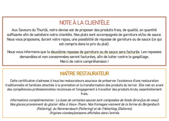 Dimanche 15 février nous étions en famille déjeuner Aux Saveurs Du Thurtal , je voudrais ici exprimer toute notre satisfaction à tous les niveaux : accueil , service, qualité du repas, grande disponibilité quant aux choix des menus, générosité dans les portions servies. Restaurant à recommander +++