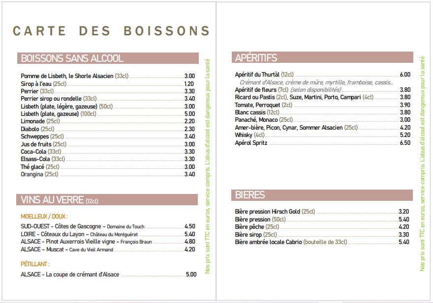 Lieu convivial et familial, au menu des plats confectionnés avec des produits locaux et issu de la ferme bio des propriétaires. Les suggestions sont pour la plupart alsaciens et excellents.