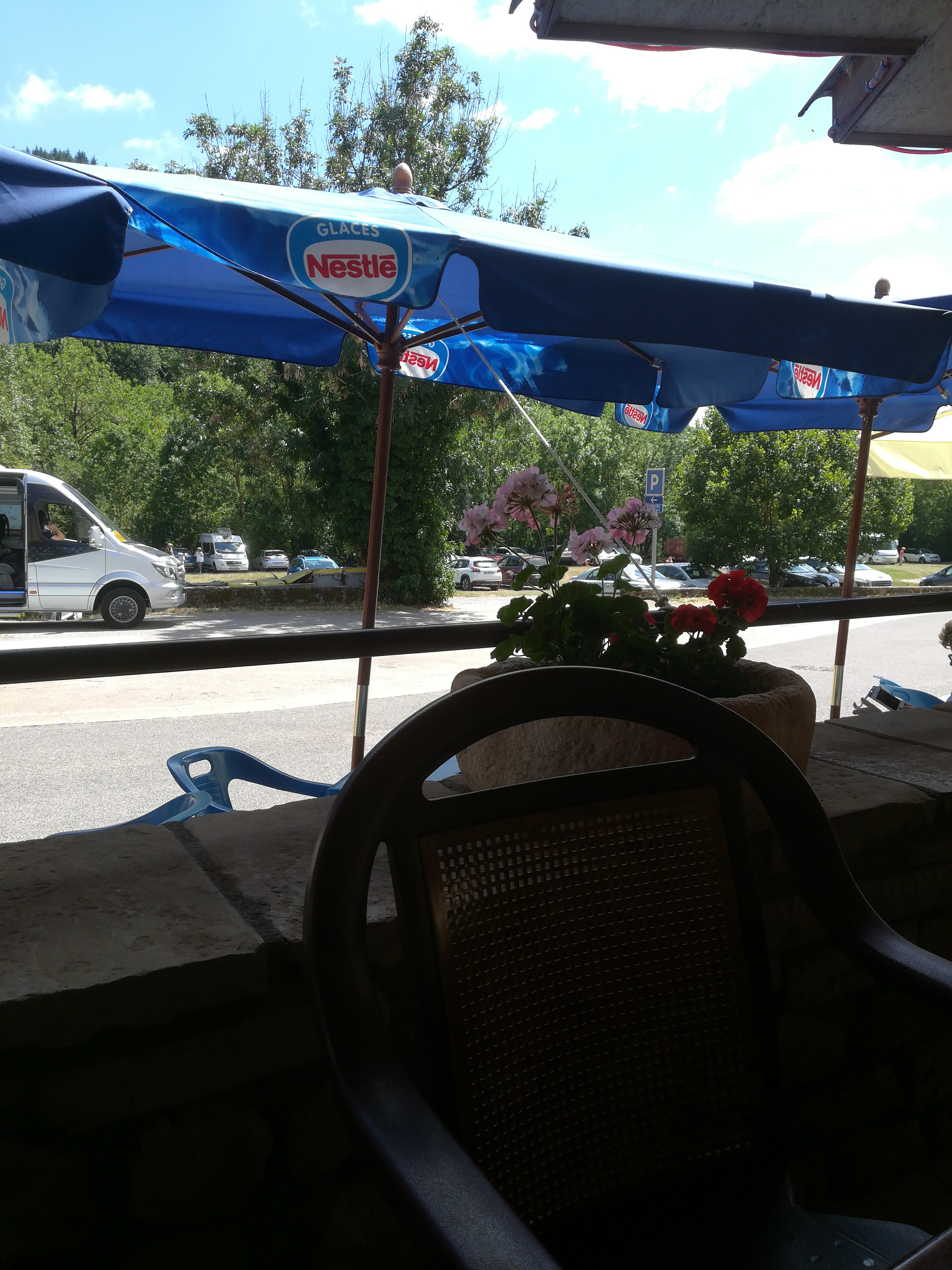 Nous y sommes arrêtés en groupe au bar ..plutôt en terrasse. Serveuse très sympathique, aimable et souriante. Le coin est assez tranquille même en bordure de route,.