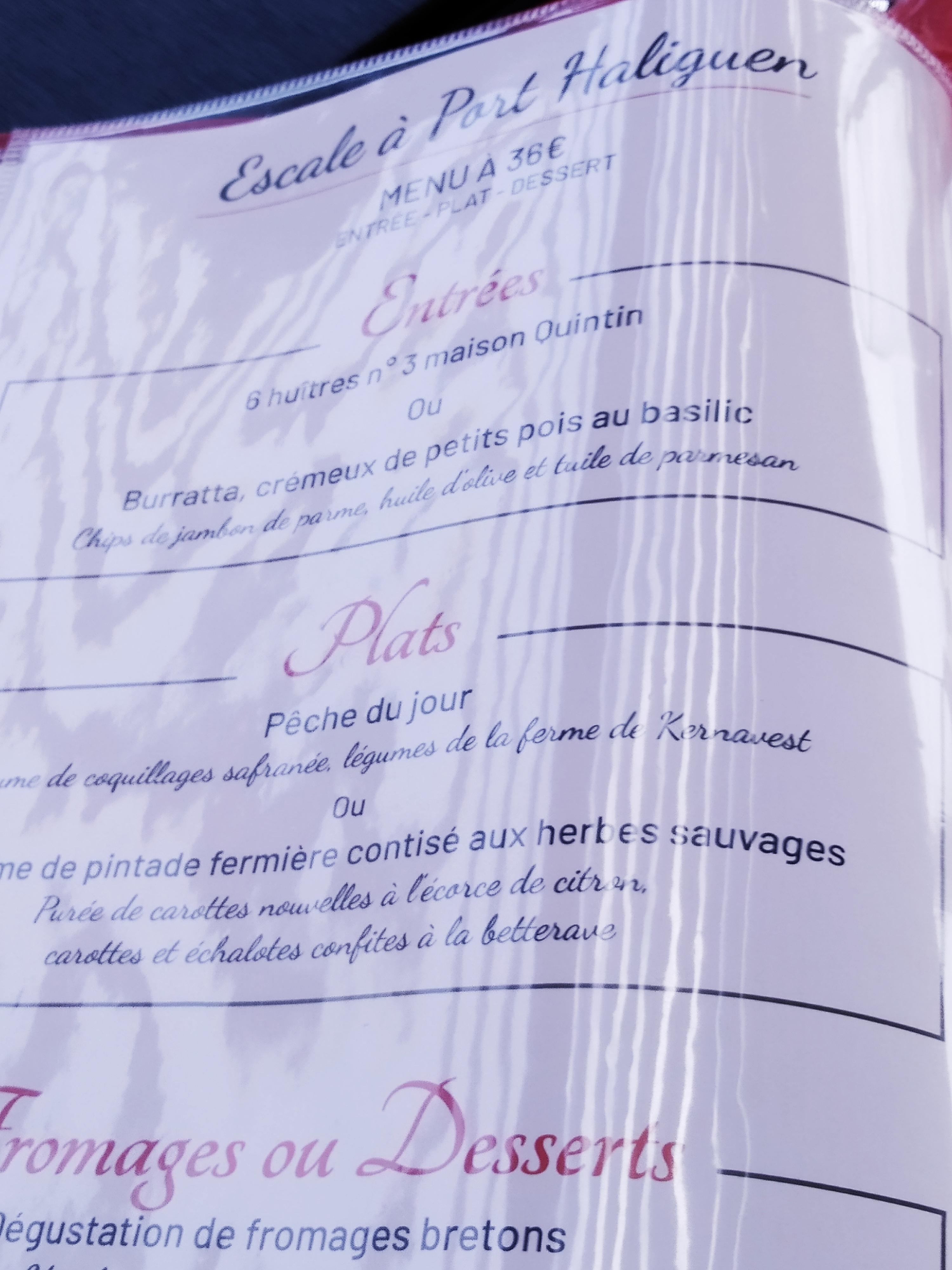 Repas excellent, très bon rapport qualité prix je recommande sans problème. Nous y avons manger à midi de passage a Quiberon nous reviendrons à notre prochain passage dans le coin.