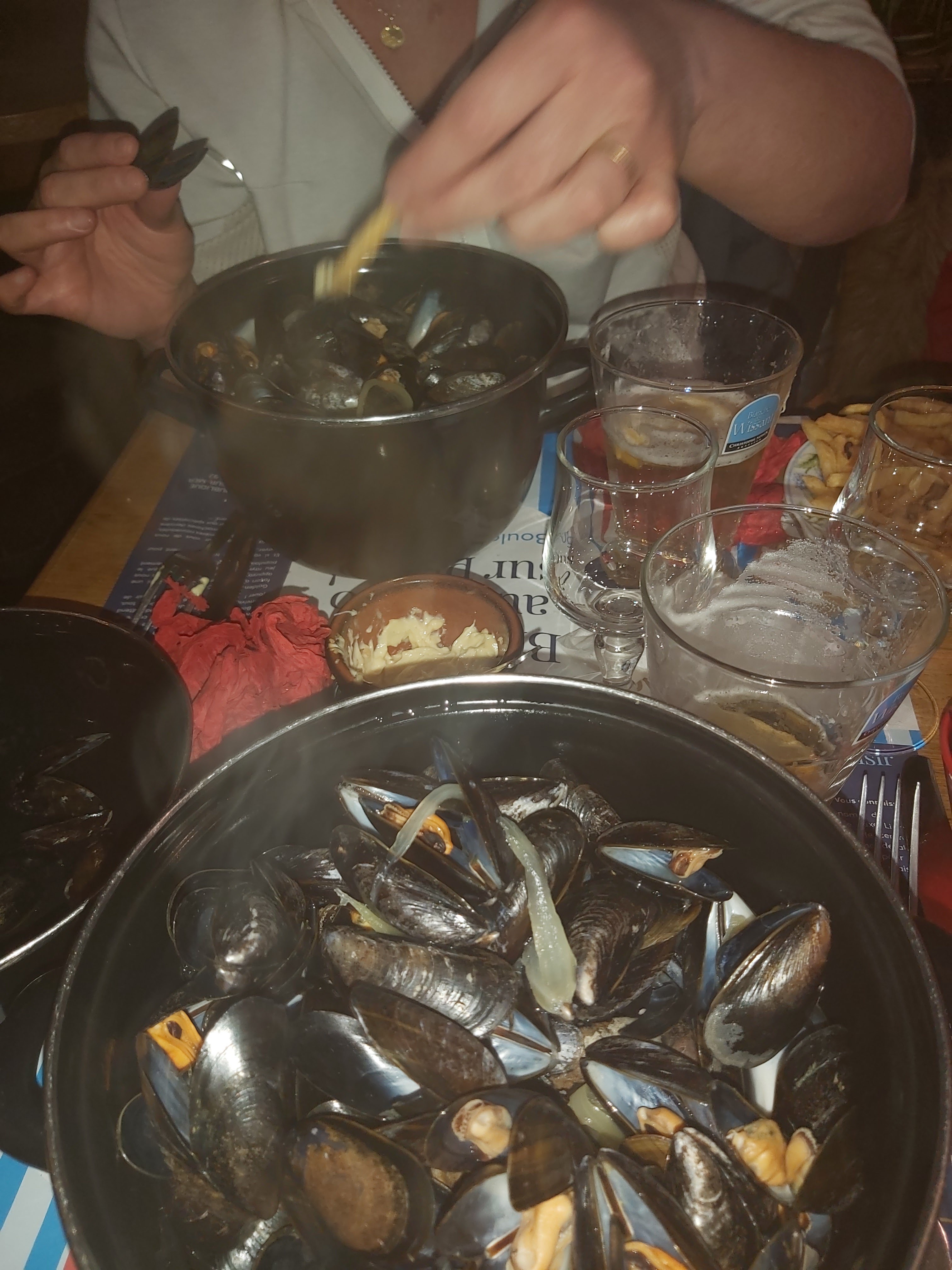 Accueil parfait même avec beaucoup de monde. Pas beaucoup d attente et le menu du jour était excellent, lieu, et bien entendu les moules. Prix tres abordables pour les familles
